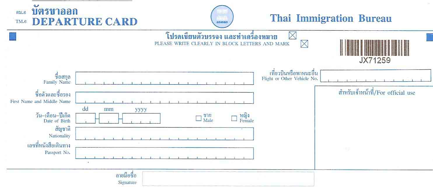 พล.อ.ประยุทธ์ จันทร์โอชา นายกรัฐมนตรี ลงนามเมื่อวันที่ 4 ส.ค.60 ให้ยกเลิกแบบรายการบุคคลซึ่งเดินทางเข้ามาในหรือออกไปนอกราชอาณาจักร (ตม.6) เพื่อปรับปรุงกระบวนการตรวจคนเข้าเมือง ณ ท่าอากาศยานต่าง ๆให้มีประสิทธิภาพ