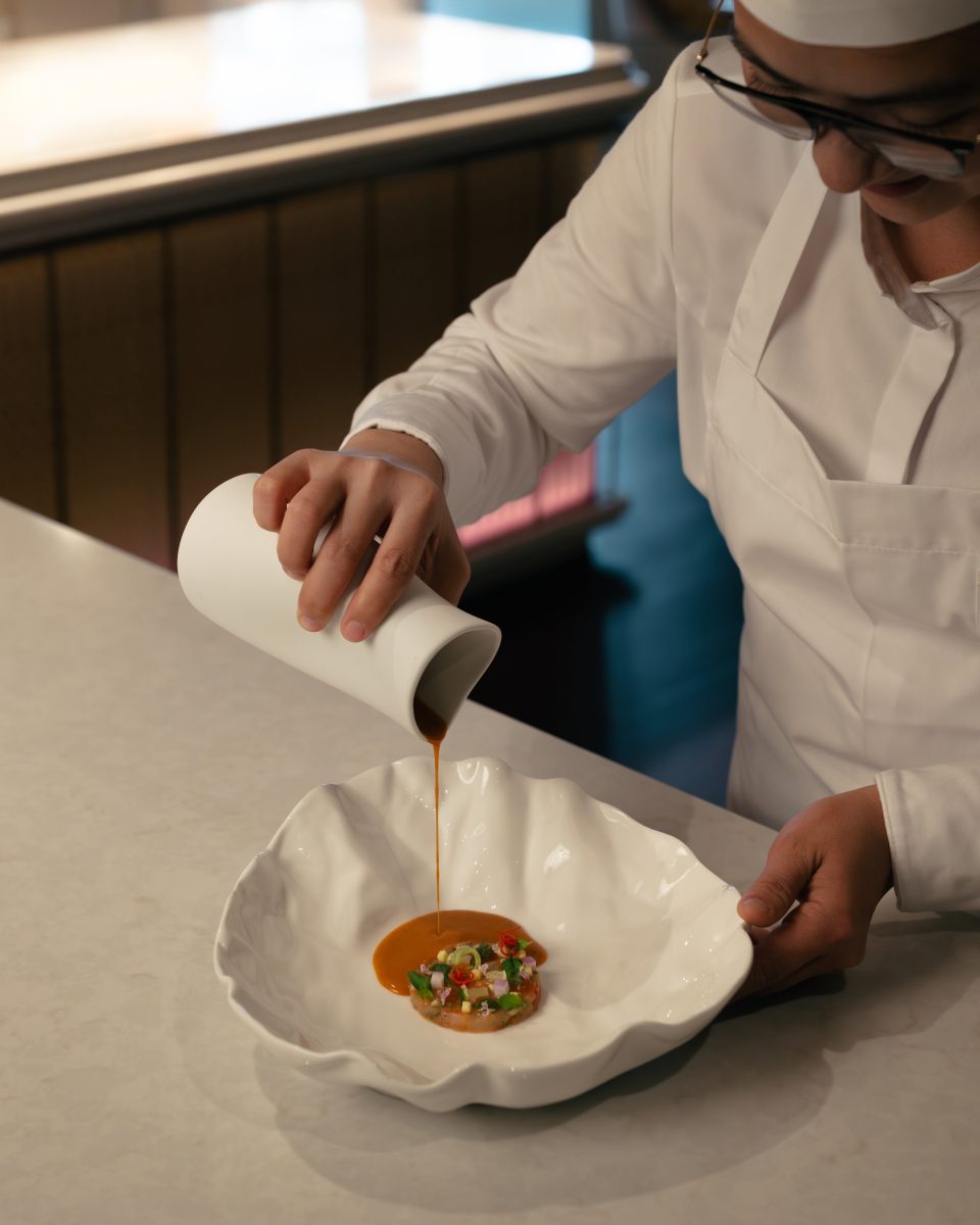 เชฟป้อมรังสรรค์ทุกเมนูด้วยความสมดุลของรสชาติเป็นแก่นหลัก ใส่ใจรายละเอียดทั้งด้านรูปลักษณ์ กลิ่น รส และความรู้สึกที่ส่งต่อถึงแขก ผ่านเมนูสะท้อนอัตลักษณ์อันยืนยงของอาหารไทย ด้วยกลิ่นและรสชาติของสมุนไพร กับเทคนิคการปรุงที่เป็นเอกลักษณ์ และความประณีตของการเล่นรสเปรี้ยว เค็ม หวานอย่างกลมกล่อม