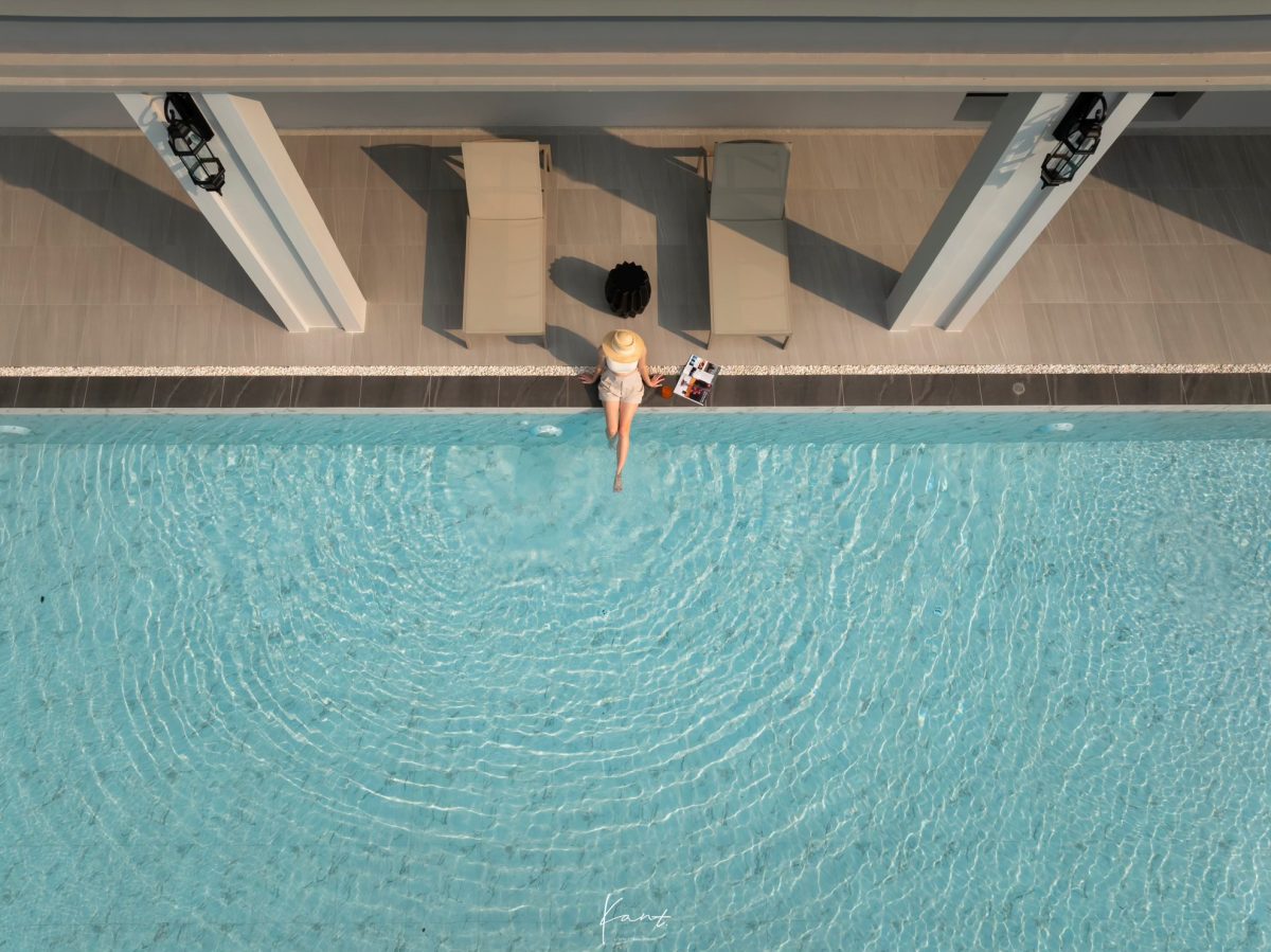 เราเริ่มจากด้านหลังของ Clubhouse กันก่อนจะเป็นสระว่ายน้ำระบบเกลือที่มีขนาดใหญ่ แบ่งเป็นสระผู้ใหญ่และสระเด็กพร้อมน้ำพุที่พ่นออกมาเพื่อเพิ่มความสนุกสนาน ด้านในสุดของสระจัดให้มี Sun Bed โต๊ะ เก้าอี้และร่มสนามกางไว้ให้ลูกบ้านได้นั่งผ่อนคลายท่ามกลางบรรยากาศของธรรมชาติและลมเย็นๆ ที่พัดไอน้ำมากระทบผิวกายในวันหยุดสบายๆ เหมาะสำหรับผู้ปกครองที่มารอเด็กๆ เรียนว่ายน้ำหรือทำกิจกรรม ออกกำลังกาย