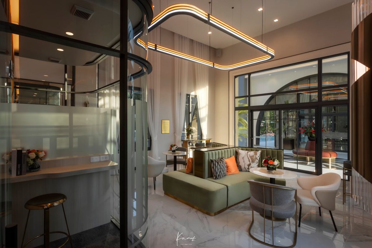 หากลูกบ้านต้องการใช้พื้นที่ในการพบปะแขกคนสำคัญก็สามารถมาใช้บริการที่ Co-Working Space ฝั่งตรงข้ามก่อนได้ซึ่งจัดที่นั่งเอาไว้อย่างเป็นสัดส่วน