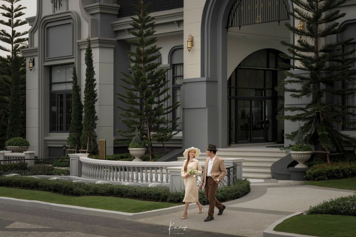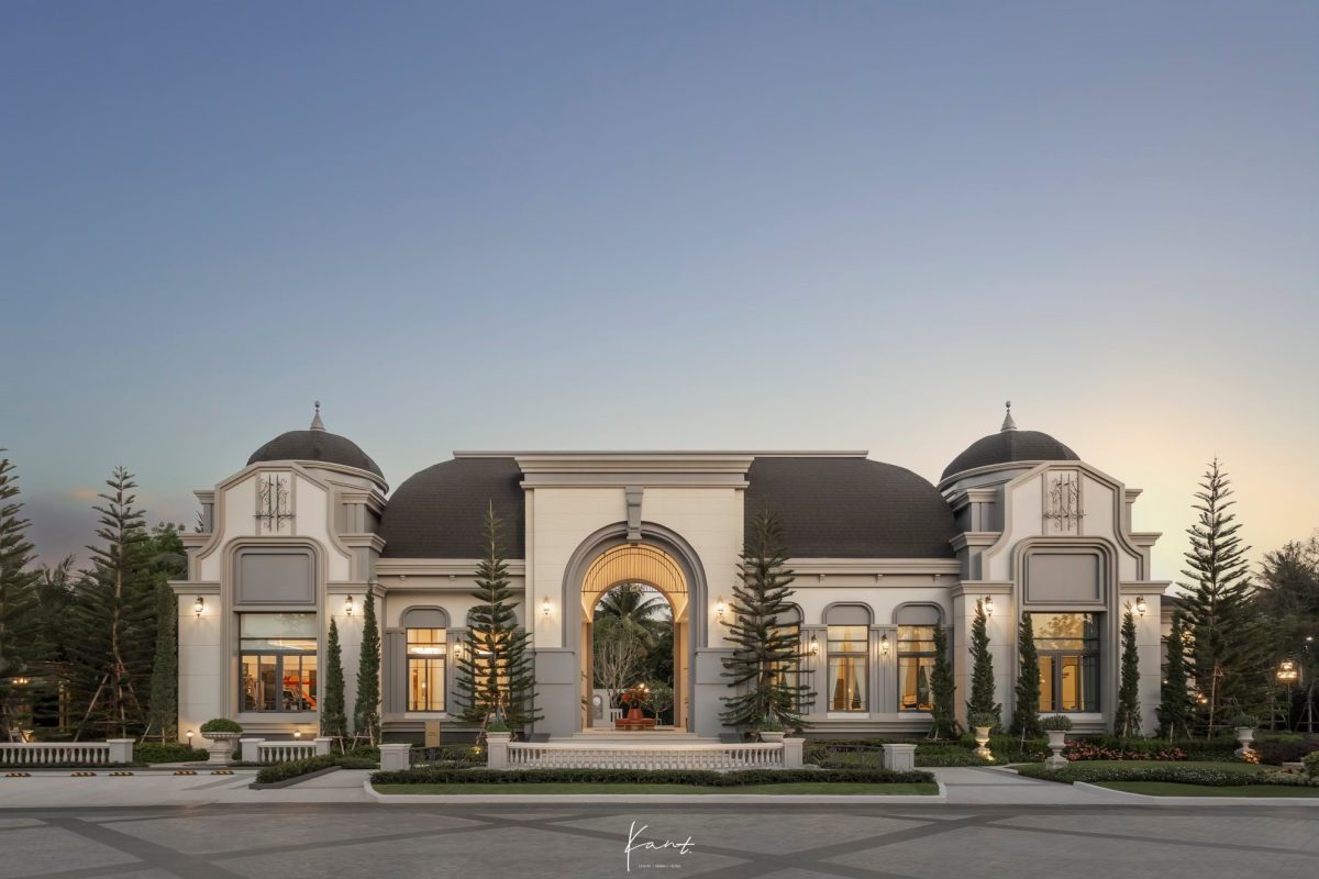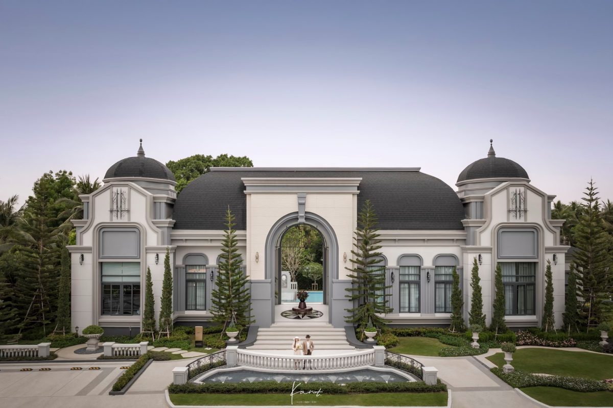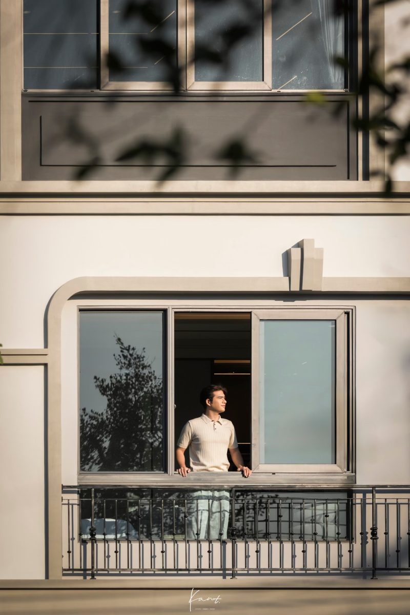 บ้านซีรี่ส์ใหม่ 3 ชั้นสุดหรูสไตล์ยุโรป ได้รับแรงบันดาลใจจากการนำเอกลักษณ์ของคฤหาสน์ยุโรปเข้ามาใช้ในการออกแบบ ลดทอนงานตกแต่งให้ดูเรียบขึ้นแต่ดูทันสมัย ทำให้โครงการนี้มีกลิ่นอายสถาปัตยกรรมยุโรปผสมผสานอยู่อย่างลงตัว เป็นดีไซน์ในแบบที่กานต์ชอบมาก คือมีประตูโค้งทรง Arch รับกับเส้นสายเหลี่ยมมุมที่คมจัด เน้นการใช้สีบ้านเป็นสีสว่าง ตัดกับเฟรมประตูและหน้าต่างที่มีสีเข้ม เพื่อสื่อให้เห็นถึงความเรียบหรูดูคลาสสิคของตัวบ้านที่ดูทันสมัยและอบอุ่น ราวกับพักอยู่ในย่านเลอมาเร่ส์ (Le Marais) ของปารีส