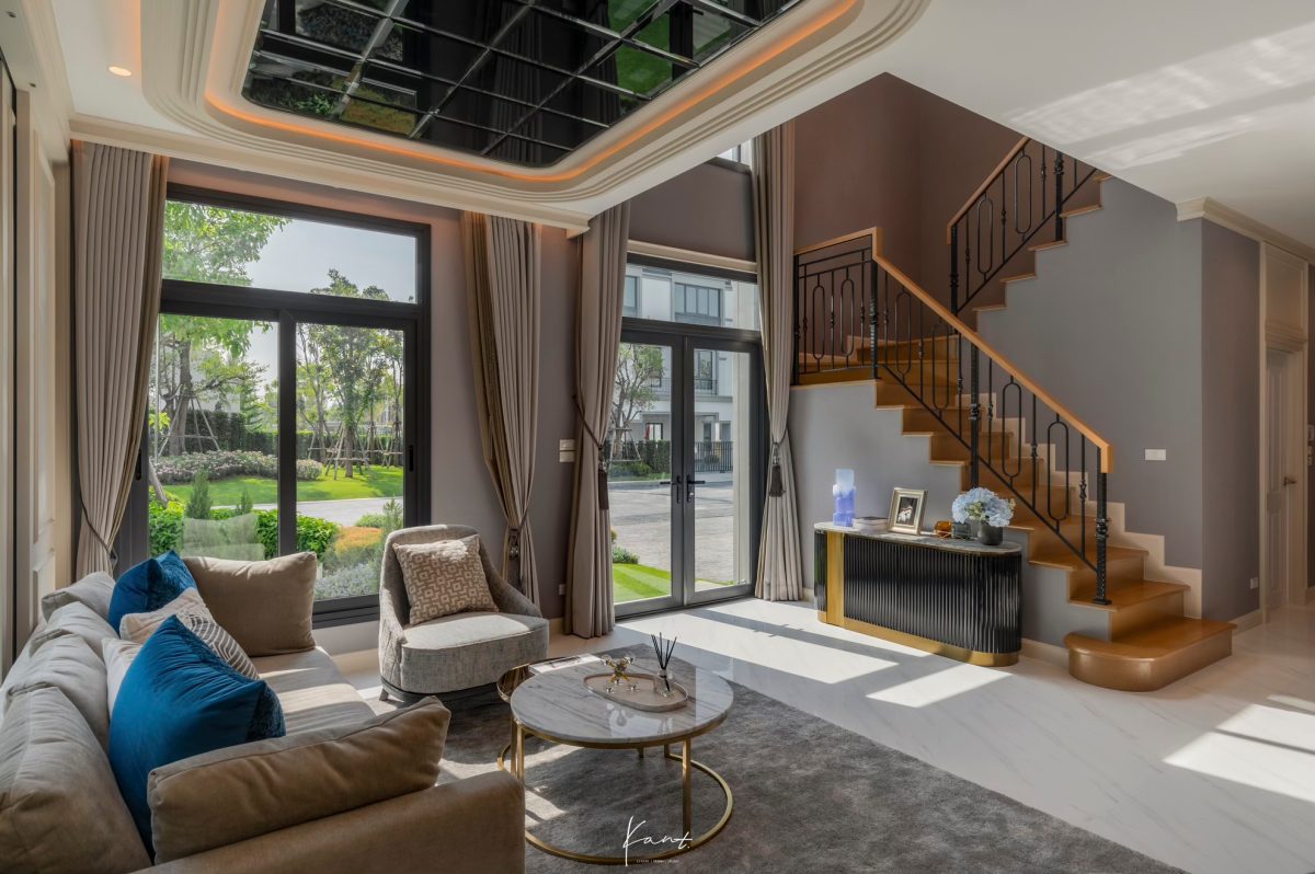 พื้นที่ภายในบ้านดีไซน์แบบ Multifunction ที่สามารถรองรับทุกไลฟ์สไตล์ และการใช้งานที่หลากหลาย มาพร้อม Double Volume ระหว่างชั้น 1 และชั้น 2 เพื่อเพิ่มความหรูหรา และความโอ่โถงให้กับตัวบ้าน ทำให้ความรู้สึกแรกหลังจากเปิดประตูเข้าสู่ภายในบ้านคือความโล่งโปร่งสบายทันทีที่กลับมาถึง
