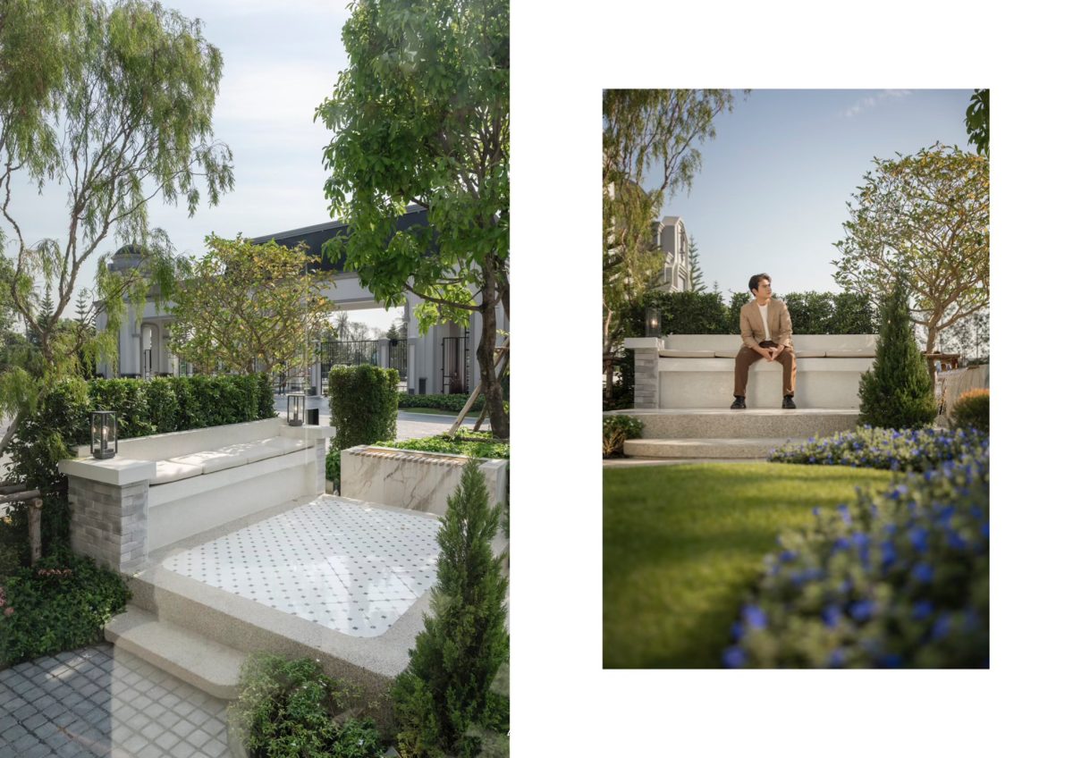 การจัดวางพรรณไม้เหล่านี้ ไม่ได้เป็นเพียงองค์ประกอบทางภูมิสถาปัตย์ แต่ยังเป็นการสร้างประสบการณ์การใช้ชีวิตที่โอบล้อมไปด้วยธรรมชาติ ทุกครั้งที่เดินเข้าสู่ Clubhouse เราจะสัมผัสได้ถึงอากาศที่สดชื่นและบรรยากาศที่ชวนให้ผ่อนคลาย สร้างความรู้สึกเย็นสบายทั้งร่างกายและจิตใจ เปรียบเสมือนการพักผ่อนอยู่ในรีสอร์ตท่ามกลางเมืองใหญ่อย่างปารีส ทำให้เราสัมผัสได้ทันทีถึงความสุขใจที่ได้อยู่ใต้ร่มไม้น้อยใหญ่ที่ปลูกไว้บริเวณพื้นที่รอบ Clubhouse และ Main Park ด้านหน้าโครงการ ฟังเสียงน้ำพุที่ตกกระทบ สมทบด้วยไม้ดอก ไม้พุ่มที่ปลูกกระจายออกไป สนามหญ้าสีเขียวที่กว้างใหญ่ทำให้รู้สึกสดชื่นขึ้นทันที ช่วงเย็นเราสามารถจูงน้องหมามาเดินเล่น มานั่งเล่นหรือเดินออกกำลังกายเบา ๆ ช่วงเช้า ก็เป็น Vibes ที่สื่อถึงความเรียบง่ายในการอยู่อาศัย ภายใต้ทำเลที่เปี่ยมไปด้วยศักยภาพจริงๆ