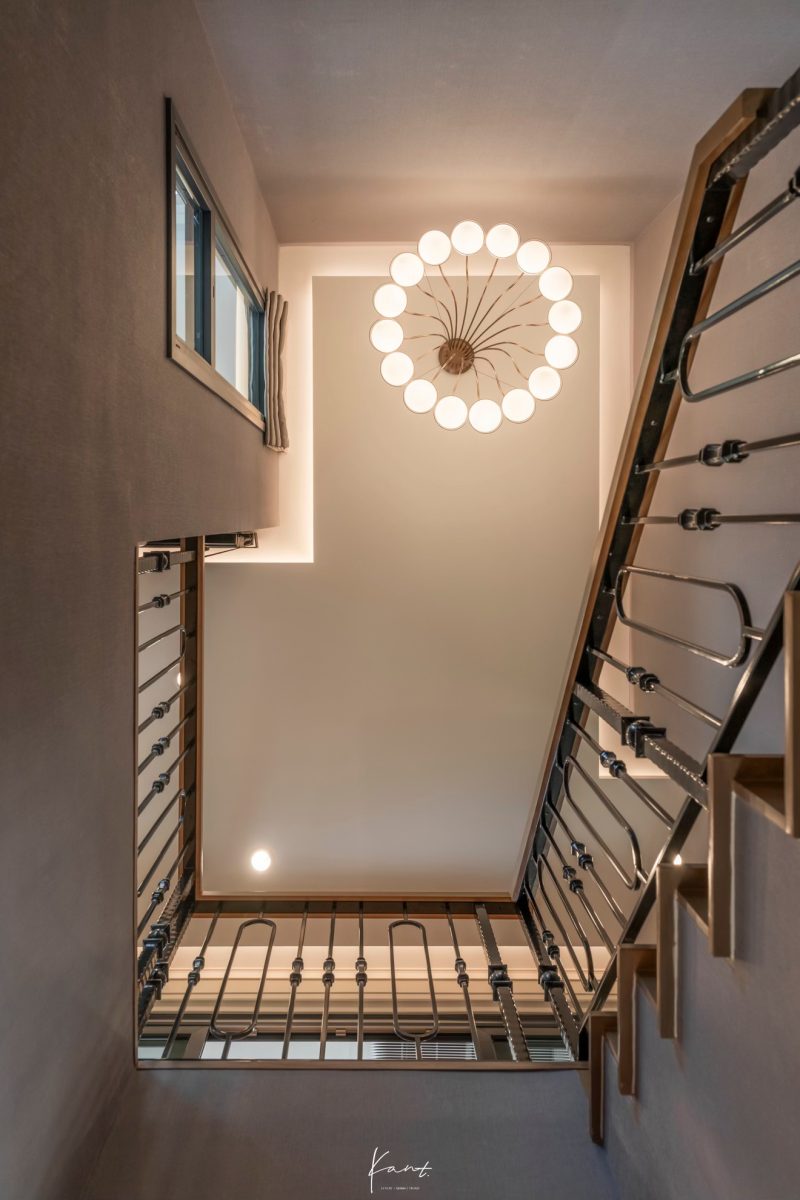 โถงบันไดทางขึ้นชั้น 3 มองจากมุมนี้ขึ้นไปได้ฟีลเรสสิเดนท์ใจกลางปารีสมากๆ ครับ โดดเด่นด้วยบันไดที่วนขึ้นไปจนเจอกับโถงกลางบ้าน ประดับด้วยแชนเดอร์เลียร์ทรงกลมที่ให้อารมณ์วินเทจนิดๆ ทำให้บ้านดูคลาสสิคยิ่งขึ้น…