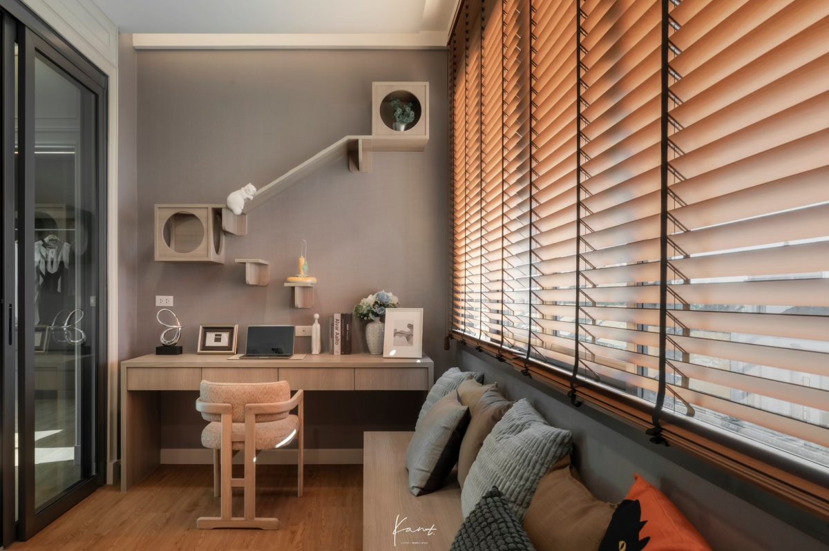 ติดกันเป็น Pantry สำหรับเป็นพื้นที่จัดเตรียมอาหาร ใช้เป็นเคาน์เตอร์ทานอาหารเช้าสำหรับเด็กๆ ก่อนไปโรงเรียนตอนเช้า เป็นมุมบาร์จิบเครื่องดื่มสังสรรค์กันเบาๆ ก่อนกินข้าวหรือจัดปาร์ตี้เพราะมีพื้นที่อยู่ติดกับสวนด้านนอกบ้าน ทำให้เป็นบ้านที่ออกแบบบรรยากาศภายในได้ดี เหมาะต่อการพักผ่อนอย่างเต็มที่เป็นรางวัลให้กับชีวิต…