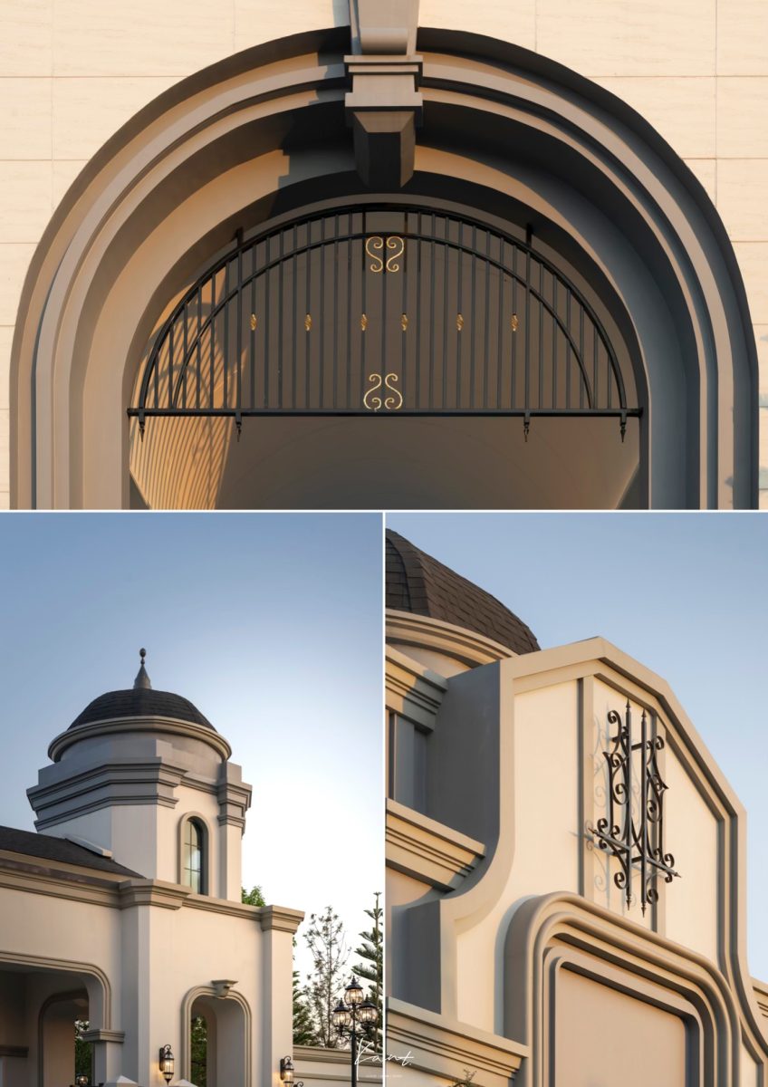 ทว่าสถาปนิกของโครงการได้นำเส้นสายและรูปทรงอันเป็นเอกลักษณ์มาปรับรูปแบบใหม่ให้ดูมีความโมเดิร์นและทำให้อาคารดูโอ่อ่ามากยิ่งขึ้น ตัดทอนความอ่อนช้อยบางอย่างออกไป เช่น ออกแบบให้ Cornices (คิ้วบัวปูนปั้น) ที่เป็นเส้นสายและทรงโค้งแบบเรียบง่ายในบางจุด แต่ยังบ่งบอกถึงงานดีไซน์แบบยุโรปได้เป็นอย่างดี ใช้วัสดุอย่างเหล็กดัดสีดำขลิบทองเข้ามาเพื่อเพิ่มความหรูหรา Pilasters (เสาติดผนัง) มีดีไซน์ที่เรียบเนียนเป็นส่วนเดียวกันกับตัวอาคาร ประตูเป็นทรงโค้งสูง (Arch) ที่ได้รับอิทธิพลจากเรอเนซองส์ที่ดูทันสมัยขึ้น