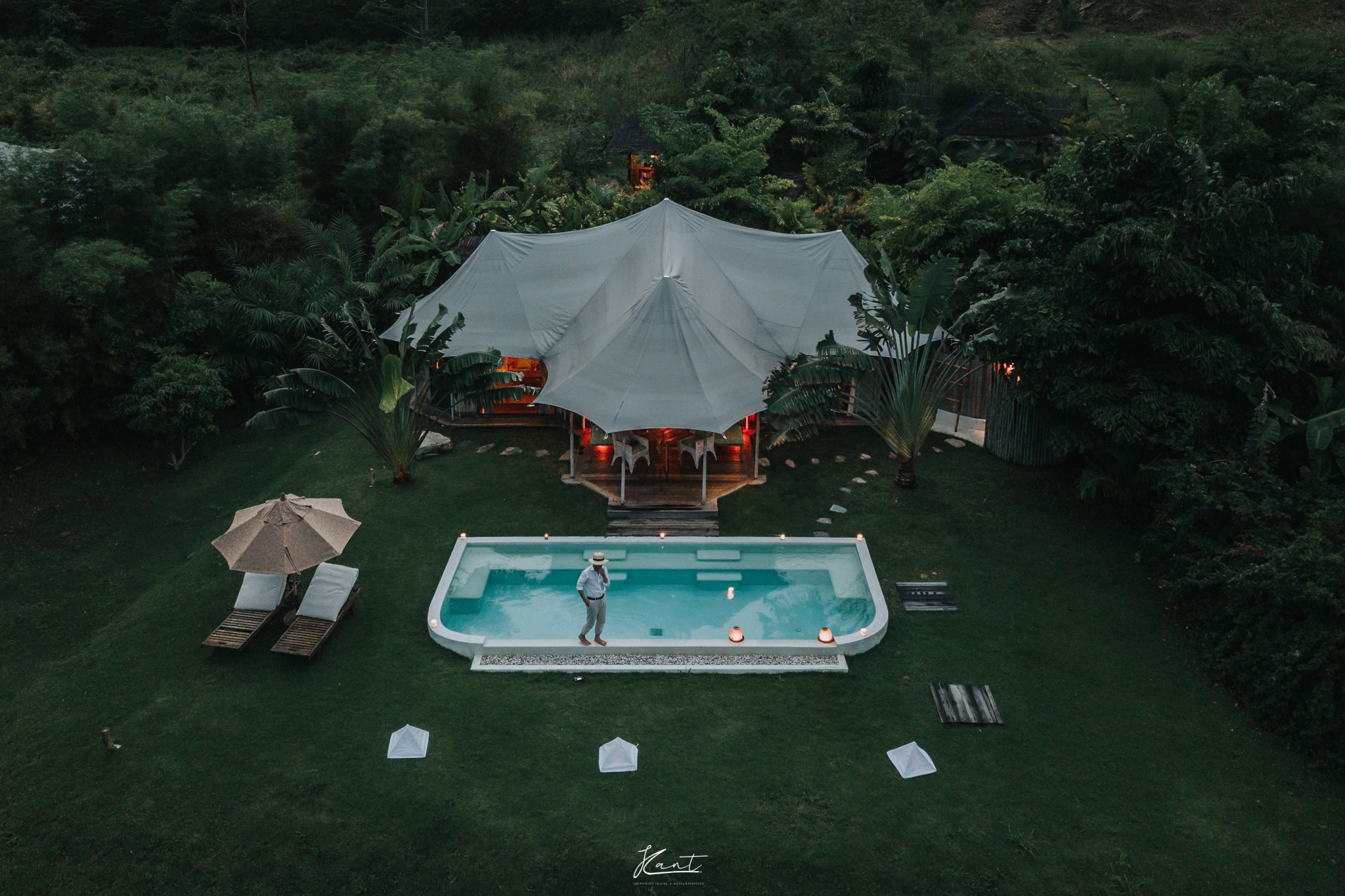 ส่วนไฮไลท์เลยคือสระว่ายน้ำเพราะที่นี่จะเป็นพูล เต็นท์ ทุกหลังครับ