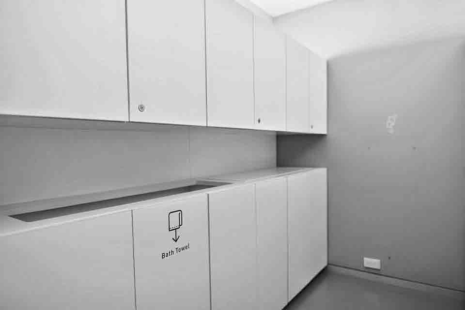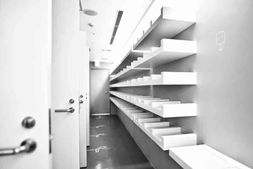 ตกแต่งเท่ สะอาด เน้นการสื่อสารด้วยสัญลักษณ์ ติดไว้บริเวณต่างๆ อาจจะเป็นเพราะการใช้สีขาวต้องการสื่อถึงความเงียบสงบสงัดไปในตัว