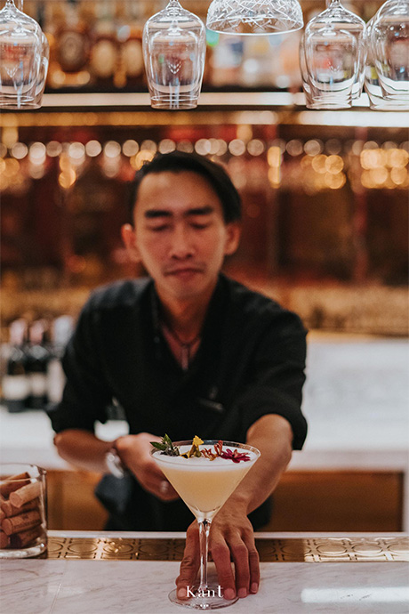 ซิกเนเจอร์ค็อกเทลจะเป็นตัวที่หอมสมุนไพรและกลิ่นดอกไม้นานาพันธุ์ ส่วนอีกแก้วนั้นจะมีชื่อว่า Jeff Ramsey ตั้งชื่อตามเชฟของร้านอาหารเพื่อนบ้าน Kintsugi ที่ออกแบบเครื่องดื่มคลูๆ สำหรับชายหนุ่มมาให้ลองจิบครับ
