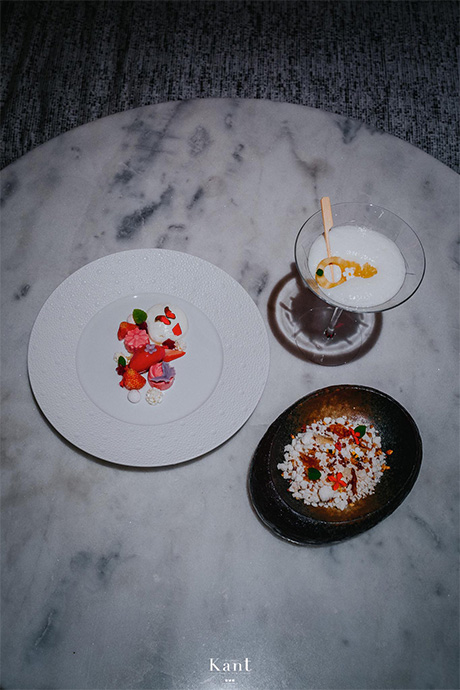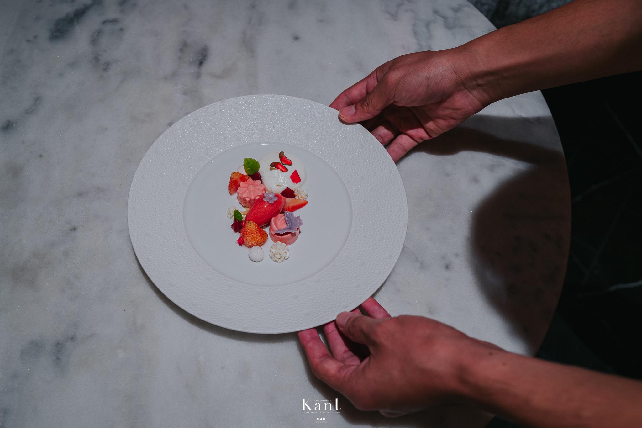 Strawberries & Yoghurt จานนี้ดูสวยงามเรียบง่าย แต่ทานได้อร่อย เชฟเลือกสตอเบอรี่จากเชียงใหม่ มาปรุงเข้าคู่กับโยเกิร์ตได้อย่างลงตัวและงดงาม