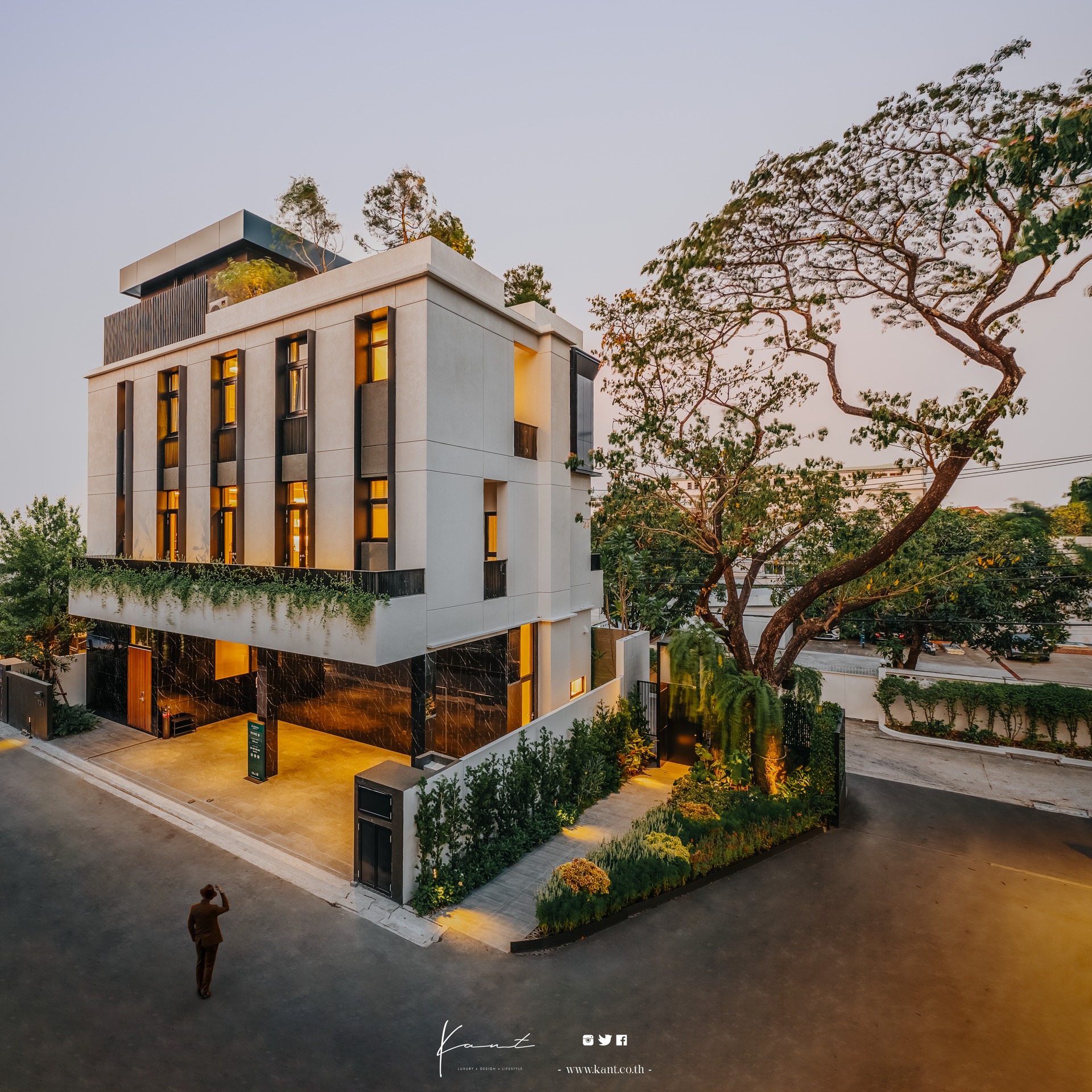 ด้วยความที่คุณปอเป็นสถาปนิกมาก่อน ดังนั้นการออกแบบบ้านจะเกิดจากมุมมองทางสถาปัตยกรรมที่ ทวิสต์ไปสู่ลูกบ้าน เป็นการมองมุมกลับจึงทำให้บ้านมีดีไซน์สวยและรุ่มรวยฟังก์ชั่นไปในคราวเดียวกัน โครงการโอบล้อมด้วยพื้นที่สีเขียว Signature Greenery กับต้นจามจุรีอายุกว่า 50 ปี ภายใต้แนวคิด “𝐏𝐫𝐢𝐯𝐚𝐭𝐞 𝐇𝐨𝐦𝐞, 𝐟𝐨𝐫 𝐏𝐫𝐢𝐯𝐚𝐭𝐞 𝐎𝐧𝐞” จึงดีไซน์บ้านออกมาในสไตล์ Modern Italian Design ที่มีความคลาสสิก ดูร่วมสมัย เหนือกาลเวลา (Timeless) สะท้อนความเป็นตัวตนของผู้พักอาศัย เป็นไปตามคอนเซ็ปต์ “𝐌𝐲 𝐂𝐮𝐫𝐚𝐭𝐞𝐝 𝐒𝐚𝐧𝐜𝐭𝐮𝐚𝐫𝐲”
