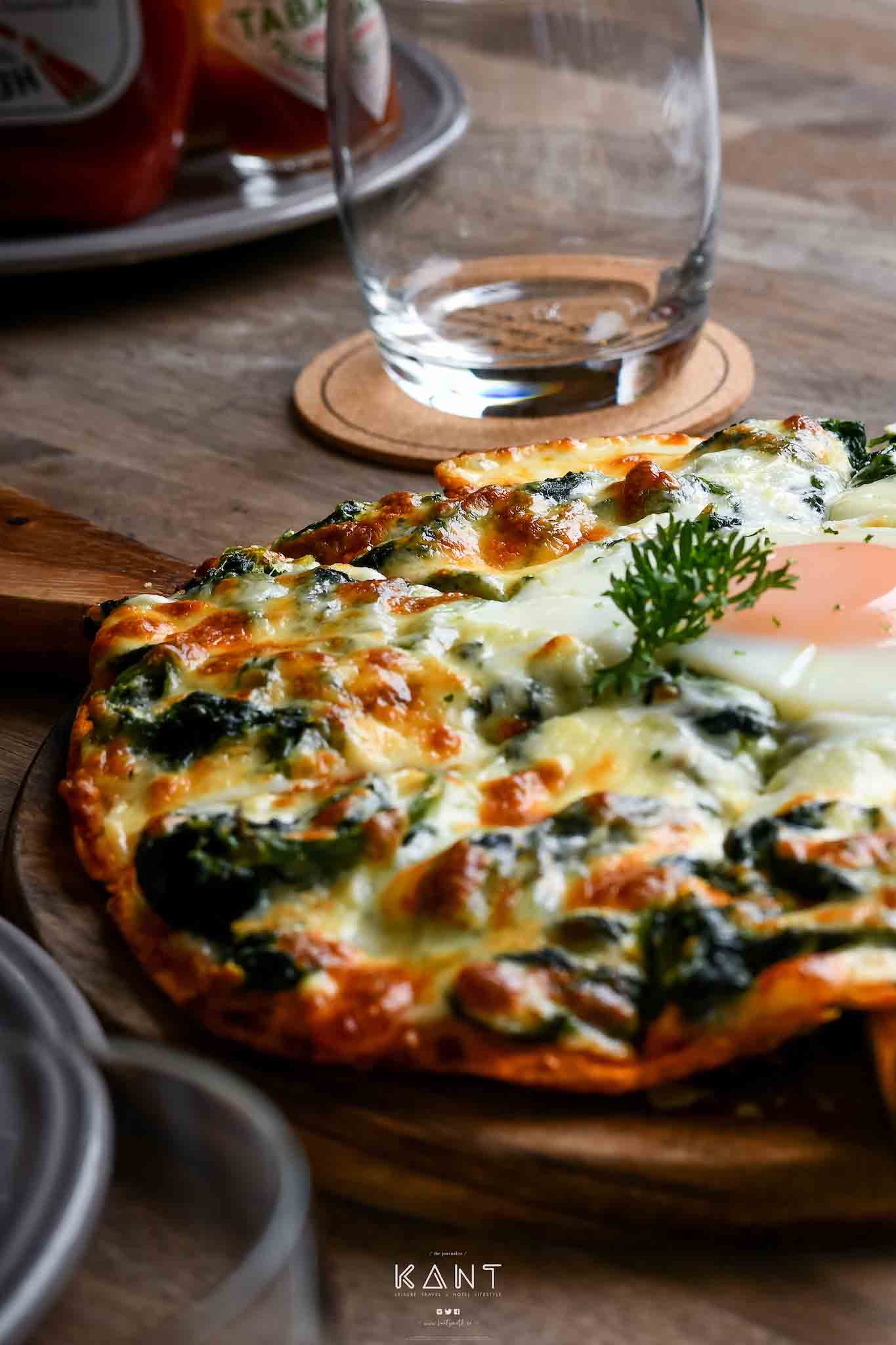 ใครสั่งแซลมอนสเต๊กอาจจะต้องรอนานหน่อย แนะนำว่าให้ลองสั่ง AKART Pizza Creamy Fettuccine Ham & Mushrom มาทานเล่นรองท้องกันก่อน