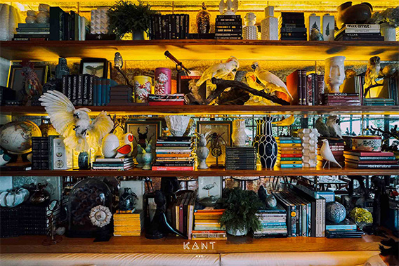 ในร้านตกแต่งด้วยของสะสมของบ้านนายเลิศ ที่บ่งบอกอัตลักษณ์ไม่ว่าจะเป็นรูปปั้นนก หนังสือเก่า ลูกโลก แผนที่ และงานเซรามิคที่หาชมได้ยาก สอดแทรกด้วยดอกไม้ ช่วงนี้เน้นดอกไม้สีเหลืองเป็นหลัก ซึ่งก็เข้ากันดีกับสีสันของทางร้านครับ