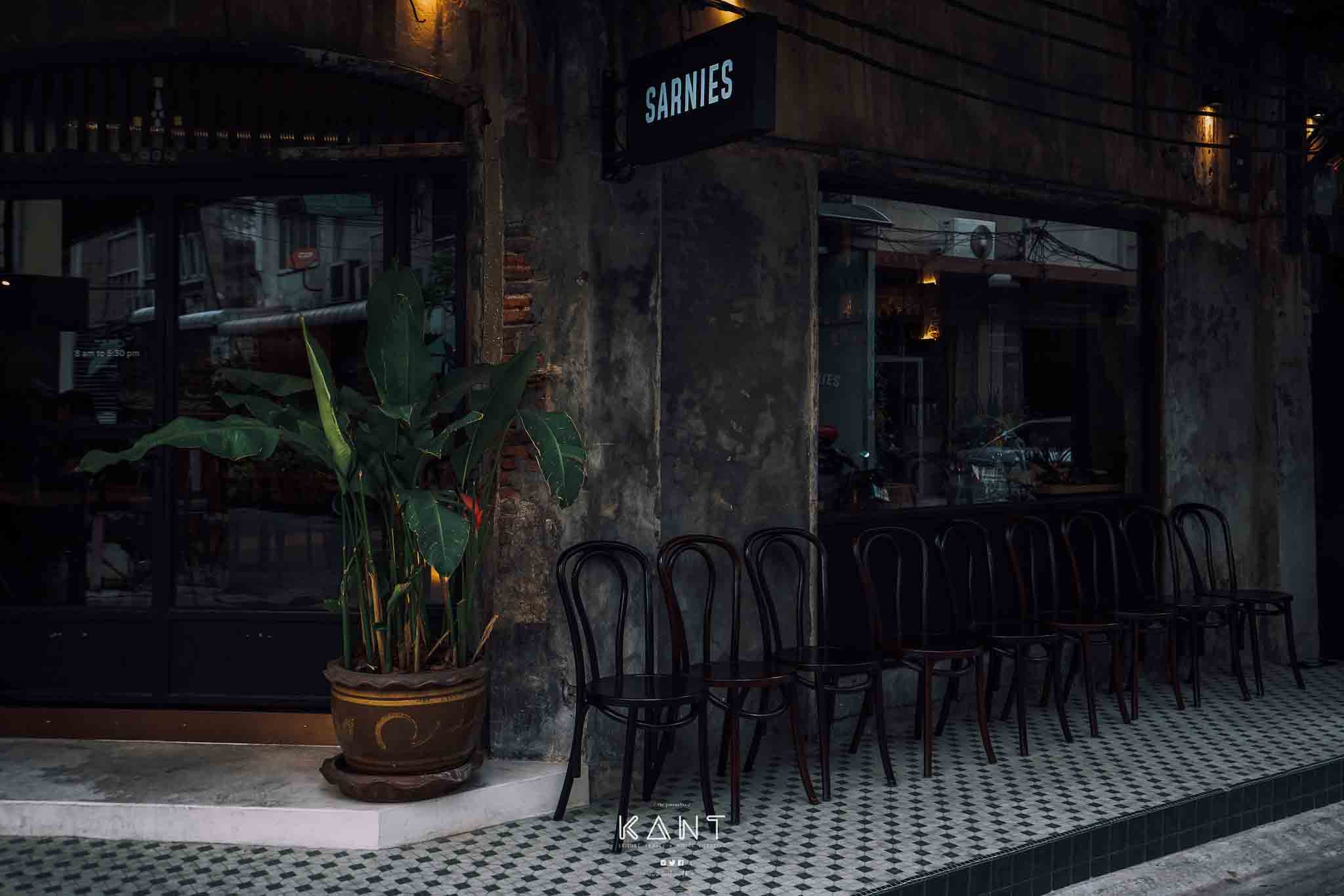 Sarnies ที่เป็นร้านกาแฟจากสิงคโปร์แต่เปิดในไทยมาได้สักพัก ตอนแรกทางร้านเน้นให้บริการกาแฟ และจำหน่ายเมล็ดกาแฟเป็นหลัก จากนั้นก็ได้ปรับในส่วนของเมนูให้มีความหลากหลายมากยิ่งขึ้น มีทั้งกาแฟ ชา โกโก้และเครื่องดื่มสไตล์ mocktail มีอาหารแบบ all day brunch  ทั้งคาวและหวานจนกลายเป็นคาเฟ่อย่างเต็มรูปแบบ