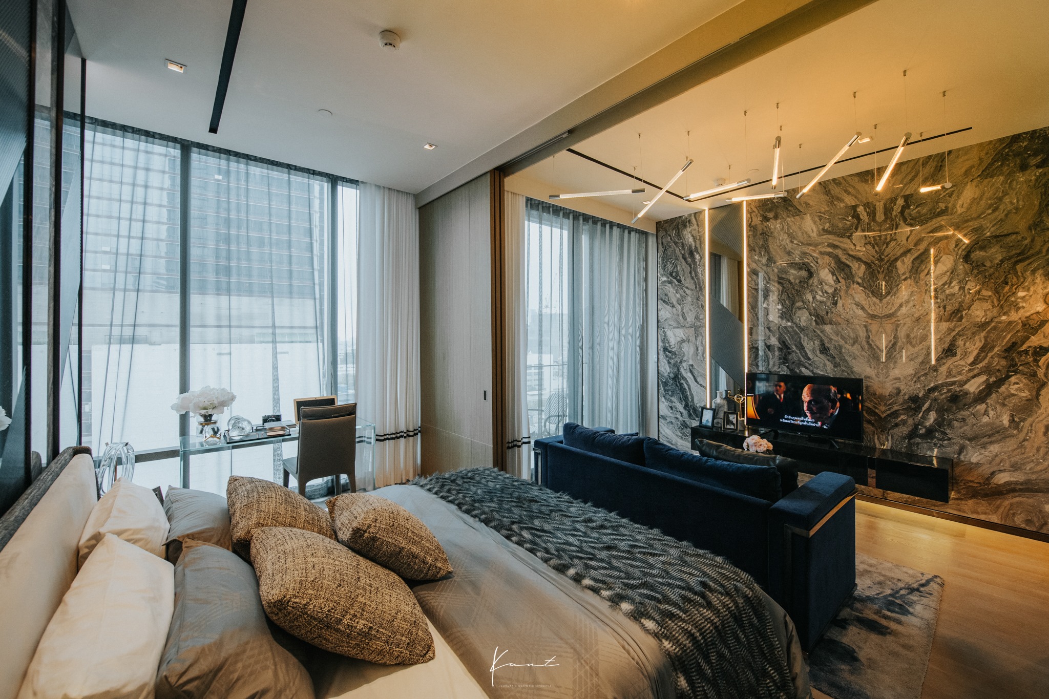 โดยภาพรวมของห้องนอนนี้จึงดูลงตัวครบทุกฟังก์ชั่นและการใช้สอย ตลอดจนวิวจากบานกระจกโดยรอบ ที่ดูโดดเด่น และ Walk-in Closet ขนาดใหญ่ในห้องแบบ 1 Bedroom หาได้ยากมาก