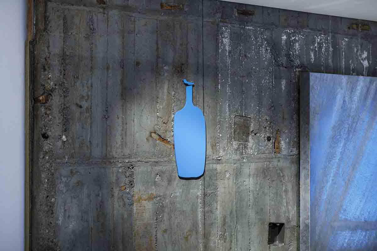 หน้าร้านแทบจะไม่มีอะไรโดดเด่น นอกไปจากประตูกระจกที่มีโลโก้ขวดน้ำสีฟ้าติดอยู่