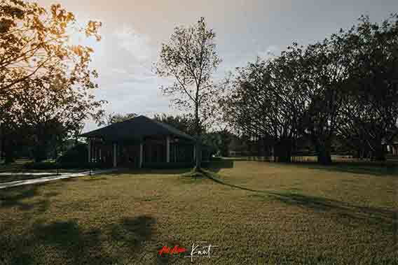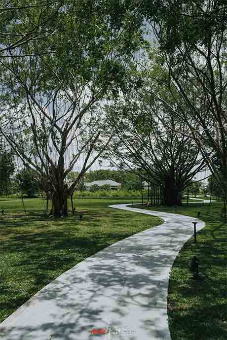 บรรยากาศภายในรีสอร์ตร่มรื่นดีครับ มีพื้นที่สีเขียวเยอะมาก เช้าๆ สามารถมาเดินเล่นสูดอากาศบริสุทธิ์ได้ ไฮไลท์คือสระบัวที่จะชูช่อบานในยามเช้า สระนี้เลี้ยงปลาด้วย ตัวใหญ่มาก ส่วนตัวแล้วประทับใจที่ได้อยู่กับธรรมชาติที่ยังไม่ผ่านการปรุงแต่งมากจนเกินไปเช่นนี้ครับ เนื่องด้วยก่อนหน้านี่พื้นที่เป็นป่า ดังนั้นต้นไม้จึงเยอะเป็นพิเศษ และพื้นที่กว้างขวาง ใช้วิธีการปั่นจักรยานเที่ยวไปรอบๆ รีสอร์ตดีกว่าครับ มุมถ่ายรูปเยอะดี