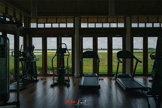 ฟิตเนสจะอยู่โซนคนละฟากกับที่ผมพัก ปั่นจักรยานมาฟิตเนส ซึ่งวิ่งสวยมากกกกกกก อยู่สุดขอบเกาะ ซึ่งมองเห็นแม่น้ำล้อมรอบ ตัดสลับกับสีเขียวของต้นไม้ เพิ่มความสดชื่น คลายเหนื่อยจากการออกกำลังกายได้ดี
