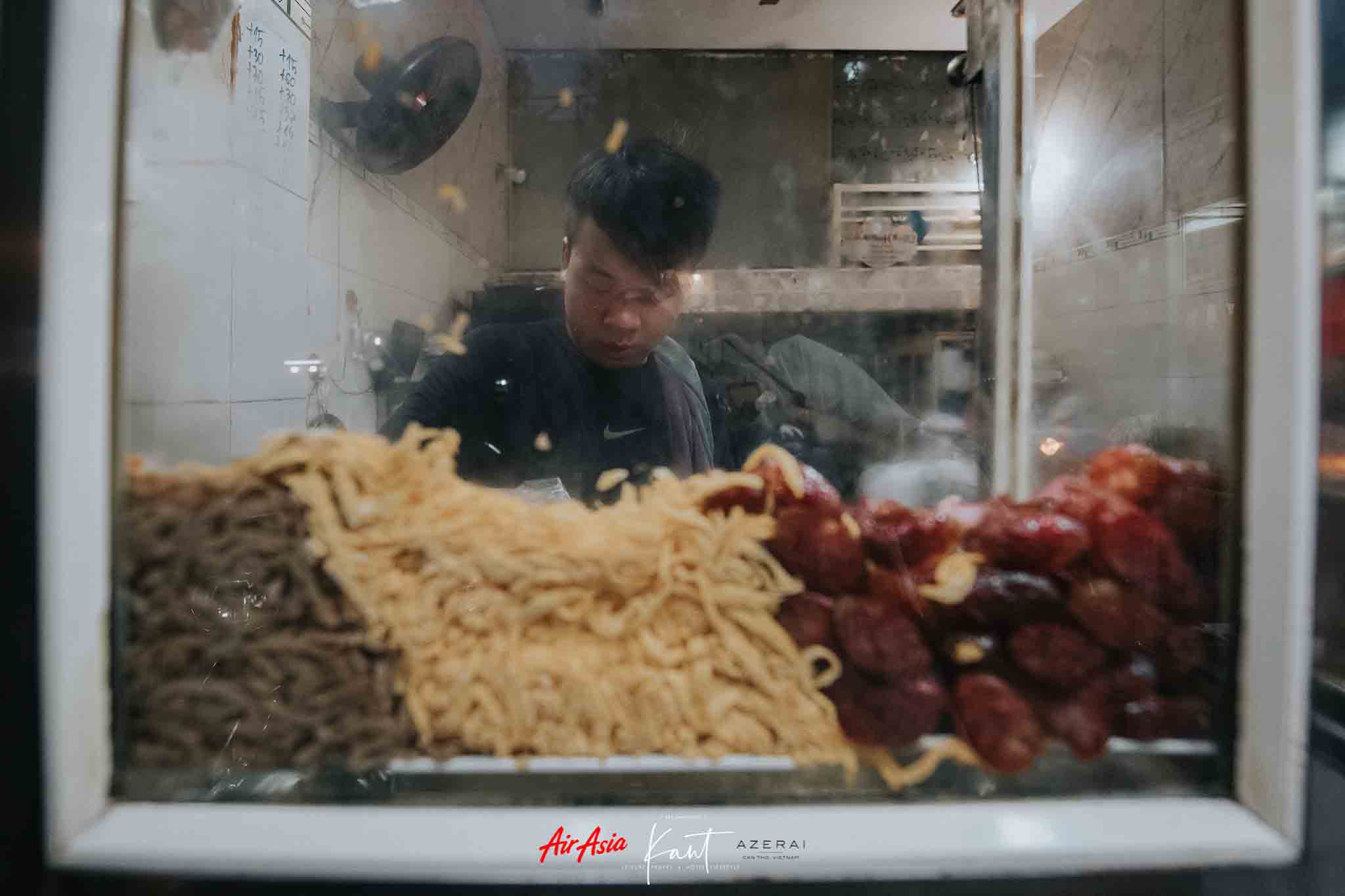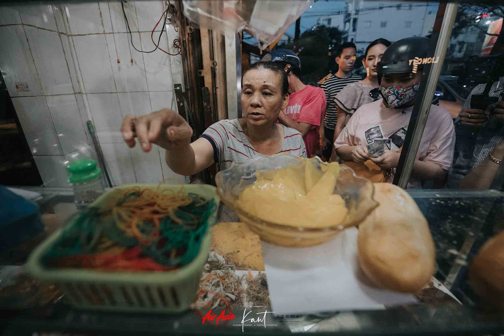 ยัง ยังไม่เข็ด อ่านรีวิวมา บอกว่าร้านขายขนมปังบาแก็ต หรือขนมปังฝรั่งเศส ที่ดังที่สุดในเกิ่นเทอ คนต่อคิวยาวมาก เปิด Google Map กดค้นหาแล้วพิมพ์ “Banh Canh Minh Thu” ก็พบว่าอยู่ไม่ไกล เดินไปได้ ไปถึงหน้าร้านก็เห็นคนต่อแถวเยอะมาก ยืนดูป้าคนขายทำ ก็เพลินดี ทำเร็วมาก แปบๆ ก็ได้ละอันนึง แต่ละคนสั่งกันหลายอัน