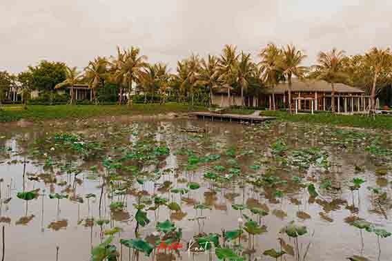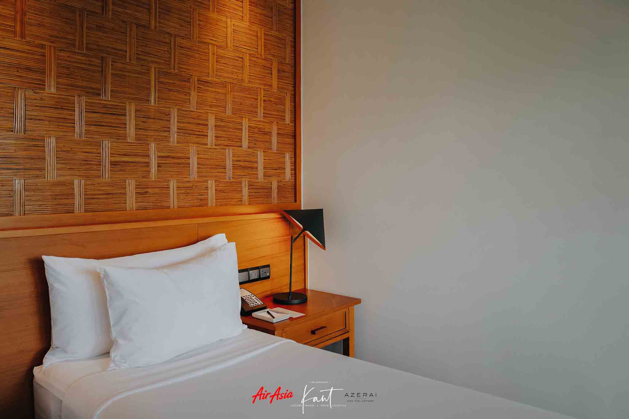 Azerai Can Tho ตั้งอยู่บนเกาะกลางแม่น้ำ มีพื้นที่ประมาณ 50 ไร่ ด้วยห้องพัก 60 ห้องที่ตั้งอยู่หลากหลายมุมของรีสอร์ต บางห้องหันหน้าไปทางแม่น้ำ หรือทะเลสาบ บางห้องก็รายล้อมด้วยสวนเขียวชอุ่ม การออกแบบได้รับแรงบันดาลใจจากเรือที่ลอยลำอยู่ในตลาดน้ำ อย่างห้องที่กานต์พักเป็นแบบ Lake Room ครับ หันหน้าเข้าหาสระบัว ตอนเช้าช่วงบัวบานจะสวยมาก ตัววิลล่าเป็นคล้ายกับบ้านแฝดสองหลังติดกัน แต่กั้นค่อนข้างห่างด้วยพุ่มไม้ ให้ความเป็นส่วนตัวดีครับ