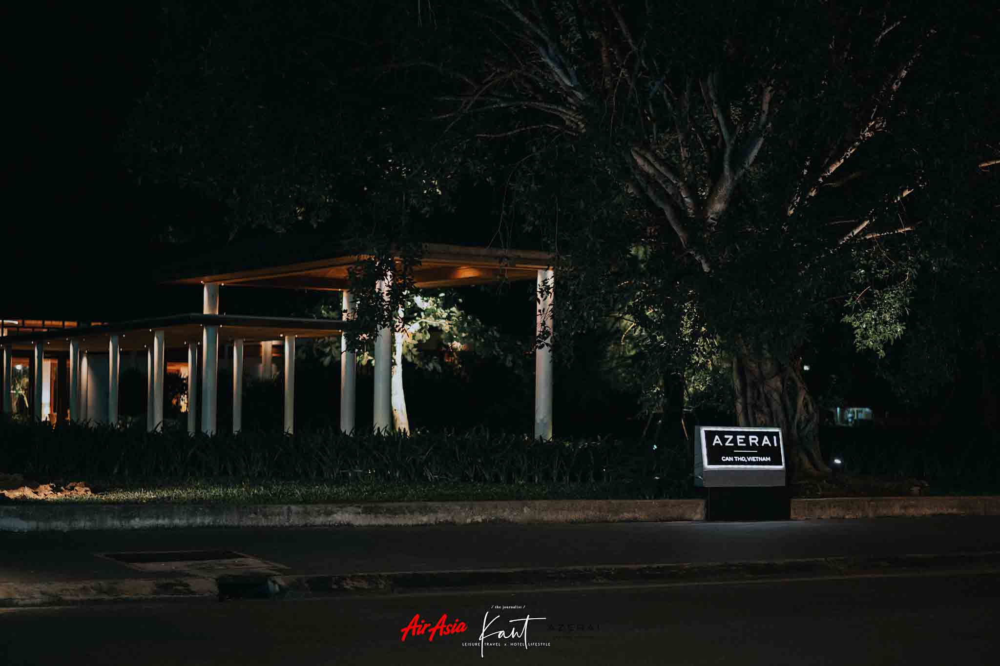 ความชิคของรีสอร์ต Azerai คือป้ายที่จะบอกว่า “นี่คือโรงแรม” เพราะนี่คือภาพแรกและภาพเดียวที่เราจะเห็นสัญลักษณ์ในการบ่งบอกว่า อาคารนี้คือสถานที่อะไร เป็นป้ายไฟขนาดเล็กๆ ชนิดที่ว่าถ้าขี่มอเตอร์ไซค์ผ่านไวๆ ก็คงมองไม่เห็น อาคารตรงนี้เรียกว่า Azerai Arrival Pavilion ซึ่งอยู่บนฝั่งของเมืองเกิ่นเทอครับ จากสนามบินเราจะมาลงกันที่จุดนี้ ก่อนจะนั่งเรือส่วนตัวต่อไปยังรีสอร์ต