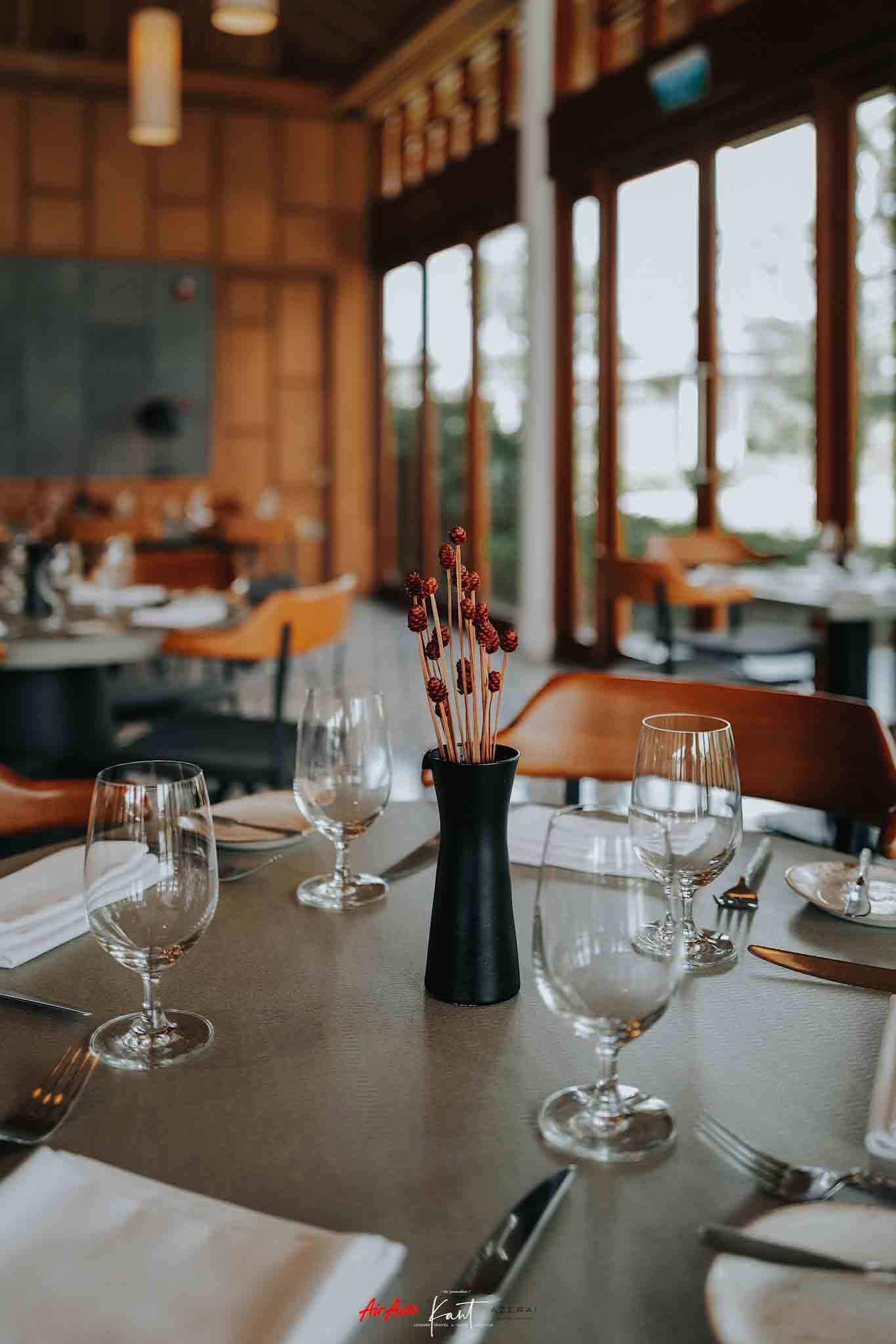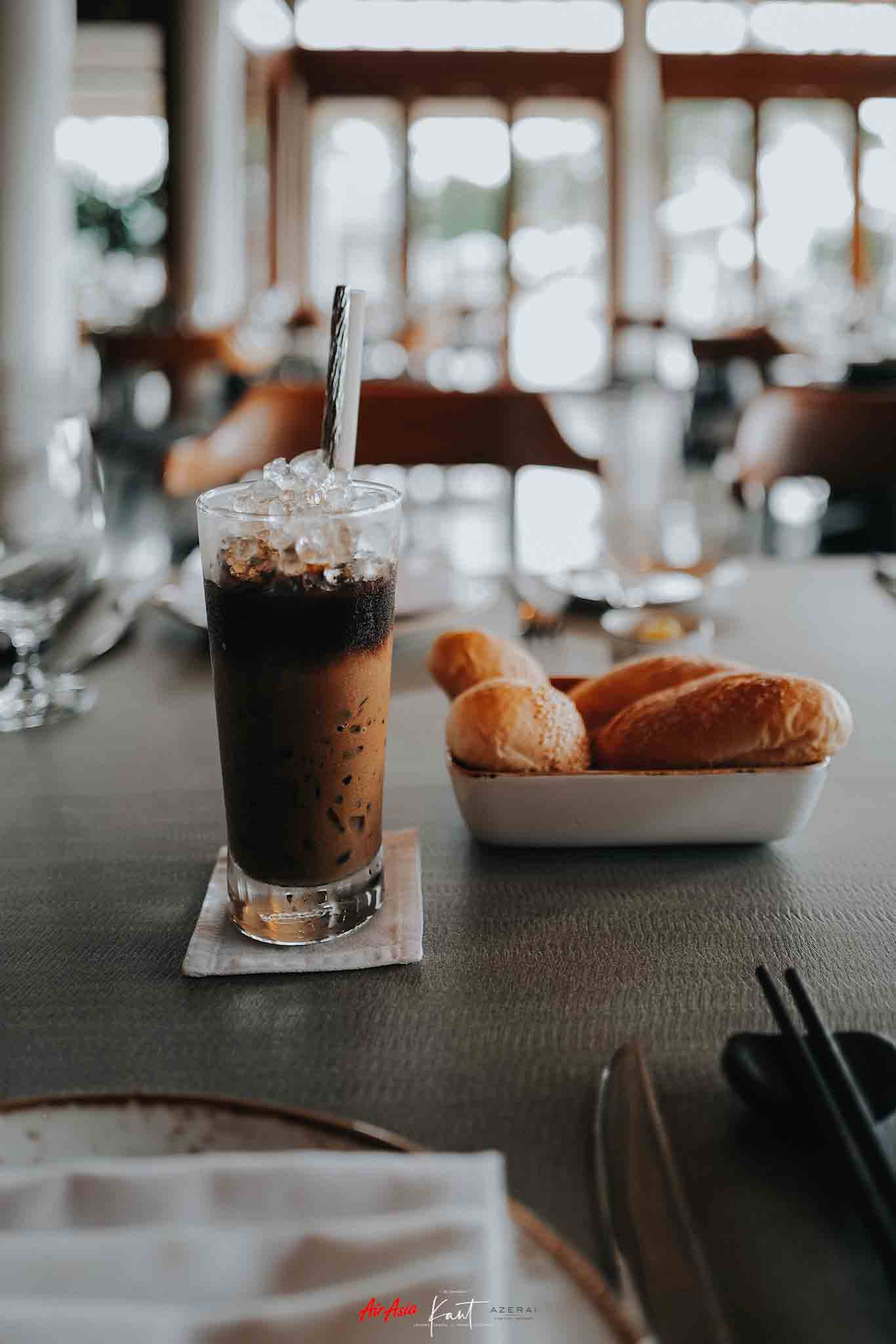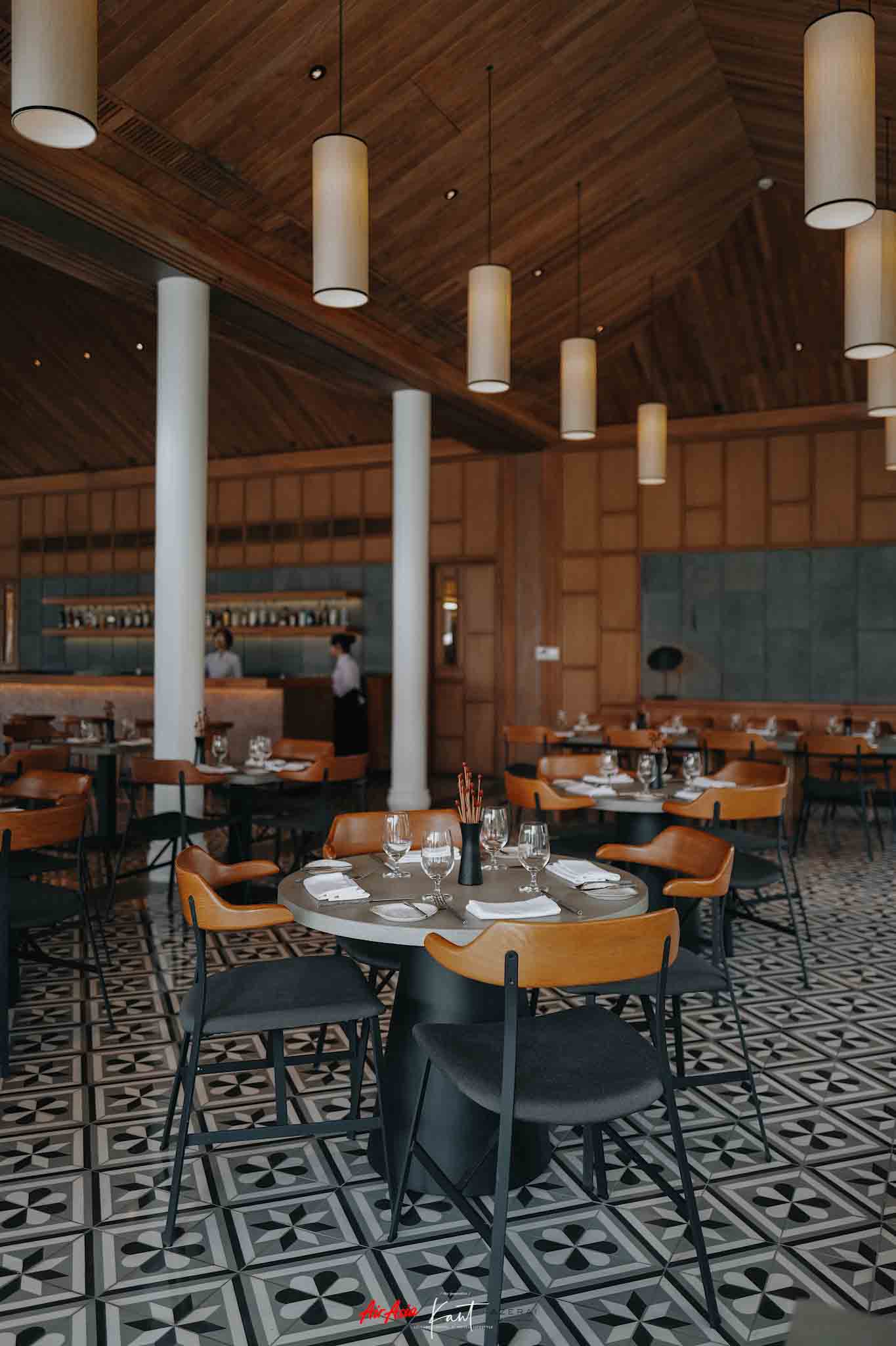 ถัดไปอีกด้านคั่นด้วยสระว่ายน้ำหลัก (Main Pool) คือห้องอาหารของที่นี่ ทุกมื้อที่ไม่ได้ออกไปทานข้างนอก ผมจะสั่งอาหารทานที่นี่ บางทีก็สั่งรูมเซอร์วิสไปทานที่ห้อง นับเป็นห้องอาหารที่ใหญ่ โต๊ะเยอะมาก มีทั้งแบบในห้องแอร์และรับลมภายนอก สามารถทานสายๆ แล้วว่ายน้ำไปด้วยก็ได้ ชิลล์ไปอีกแบบ หรือจะนอนอ่านหนังสือบนเตียงผ้าใบริมสระแล้วสั่งเครื่องดื่มจากบาร์มาจิบก็เป็นไอเดียที่ดี