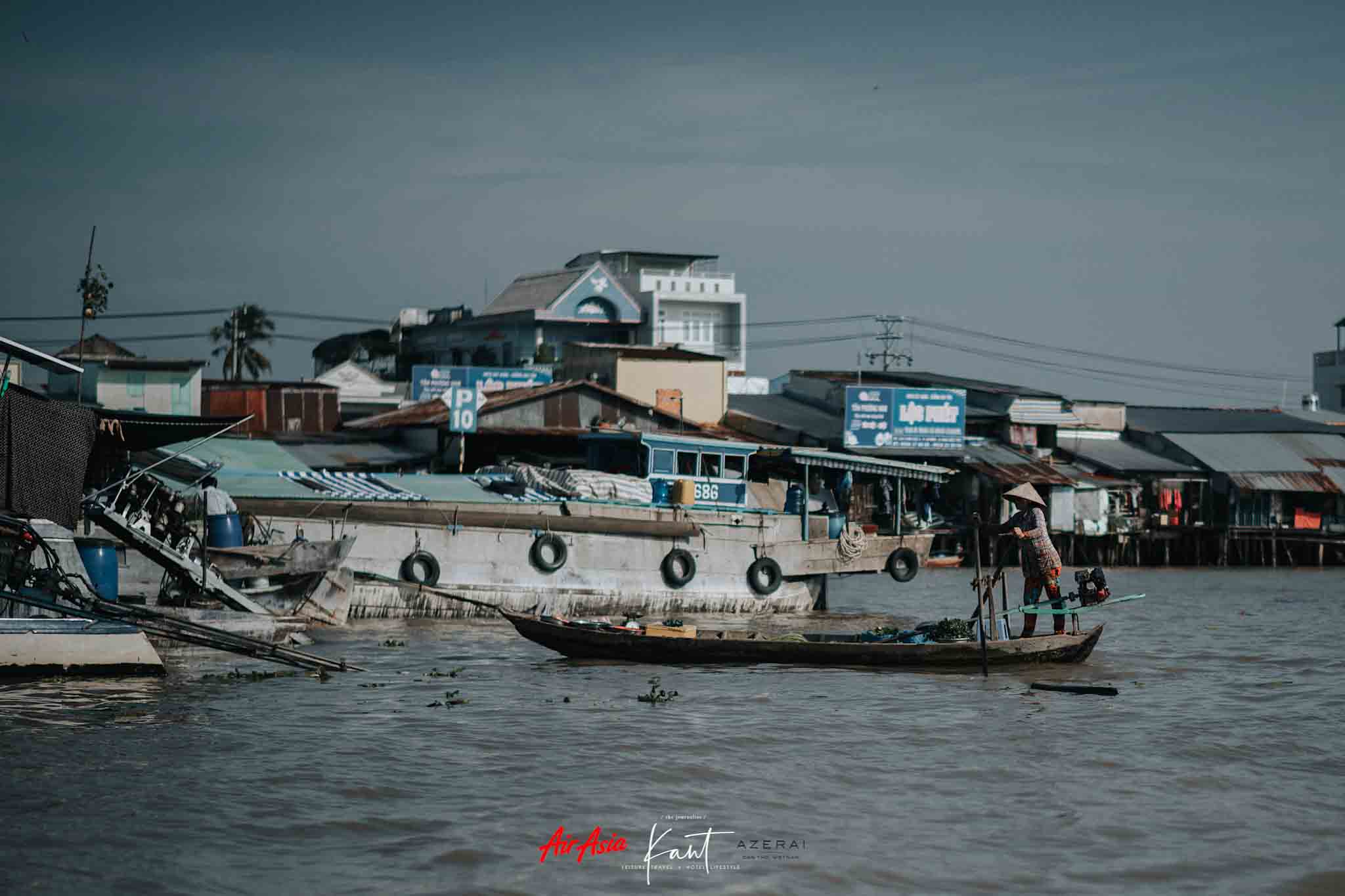 การมีพักผ่อนที่รีสอร์ตหรูเป็นเกาะกลางแม่น้ำ อย่าง Azerai กลายเป็นไฮไลท์อีกอย่างของทริปเกิ่น เทอ คือ มีความ Luxury ที่เป็นแลนด์มารก์แห่งใหม่ของเมือง มีจากภาพถ่ายโดรนจะเห็นว่า มีพื้นที่สีเขียวเยอะมาก อากาศดี ด้วยบรรยากาศที่สวยงาม มีความเป็นส่วนตัวของวิลล่าแต่ละหลัง มีกิจกรรมให้ทำเยอะมาก จนไม่อยากออกไปไหนนานๆ สามารถพักผ่อนอยู่ที่นี่ได้นานตามที่ใจต้องการเลยล่ะครับ ส่วนเรื่องการเดินทางนั้น ทริปเกิ่น เทอ กานต์บินกับแอร์เอเชียครับ เพราะมีบินตรง 3 ไฟล์ทต่อสัปดาห์มาลงเกิ่น เทอ ได้เลย เป็นไฟล์ทบินตรงชั่วโมงเศษ ก็จะถึงเมือง “เกิ่น เทอ” เท่าที่สังเกต จะพบว่า ผู้โดยสารคนไทยมีจำนวนไม่มากเท่า ชาวเวียดนามครับ สอดคล้องกับตัวเลขที่บอกว่า คนเวียดนามเลือกมาเที่ยวไทยเป็นอันดับหนึ่ง