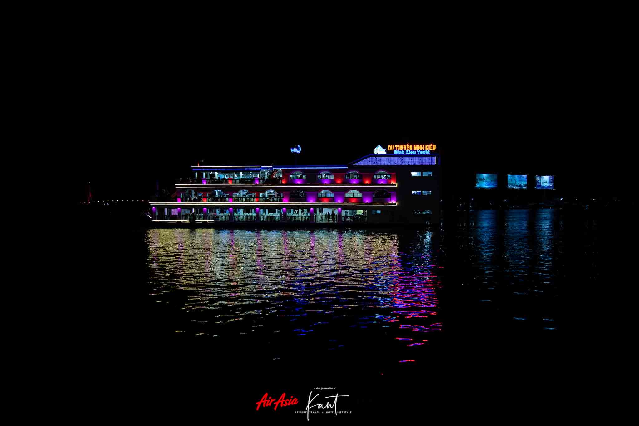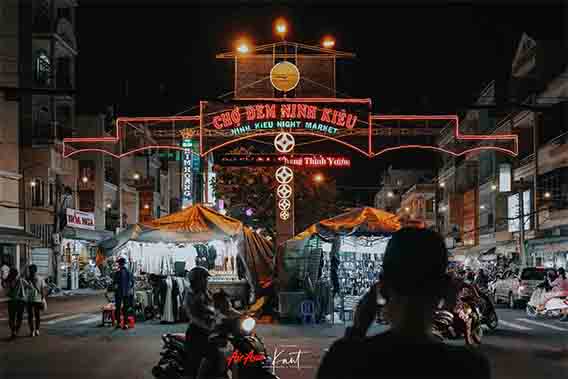 เดินเล่นบนสะพาน Cau Di Bo Ninh Kieu ซึ่งเป็นแลนด์มาร์กของเมืองเกิ่นเทออีกอย่าง ตัวสะพานออกแบบมาได้ทันสมัยมากๆ ยามค่ำคืน สะพานจะเปิดไฟประดับสีสันสวยงาม และจะพบกับผู้คนมากมายที่พากันออกมาเดินเล่นชมบรรยากาศกัน มองออกไปในแม่น้ำ เห็นเรือใหญ่ที่พาคนไปทานข้าวล่องแม่น้ำ แล่นกันขวักไขว่