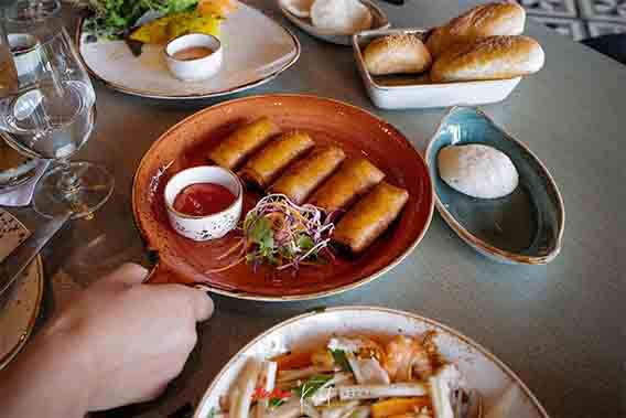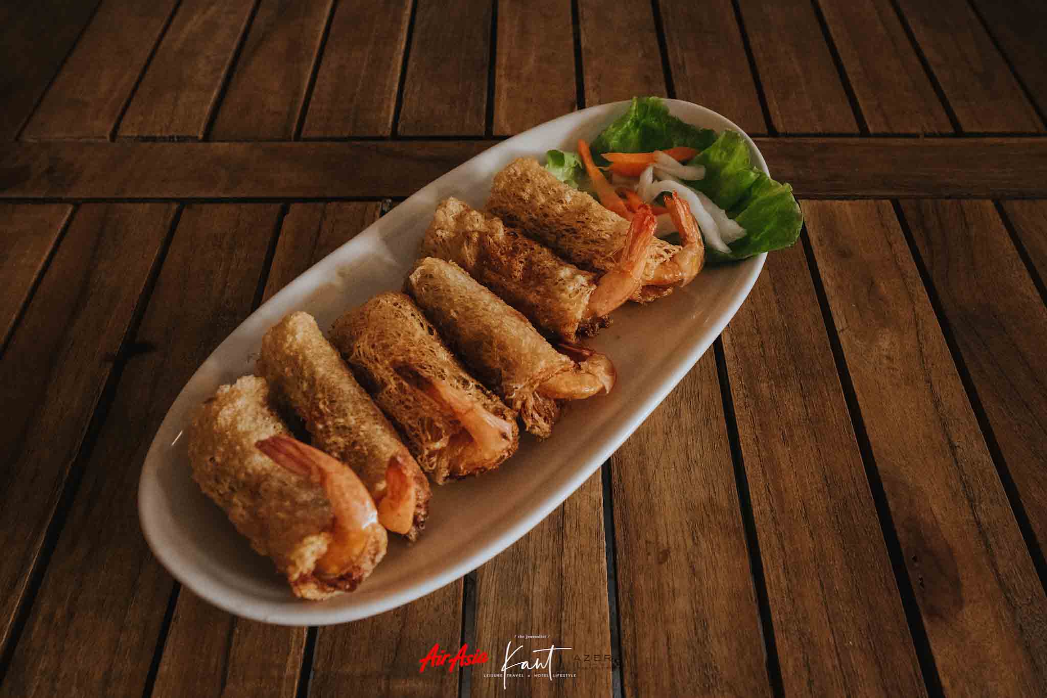 เด็ดสุดต้องยกให้ปอเปี๊ยะกุ้งทอดกรอบ กัดแล้วกรวบๆ เลยครับ กุ้งสดเด้งดี ปรุงรสมาพอประมาณ ทานกับซอสพริกเวียดนามยิ่งเด็ด