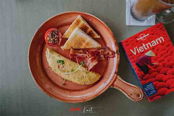 มื้อเช้าที่นี่จะเริ่มตั้งแต่ 6:30 โดยมื้อเช้าจะถ้าเป็นเสาร์อาทิตย์ไลน์อาหารก็จะแน่นหน่อย มีเฝอชุดใหญ่ตั้งโต๊ะไว้บริการ นอกนั้นก็เป็นอินเตอร์คอนติเนนทัลทั่วไป แต่ถ้าวันธรรมดาจะให้เป็นเมนูสั่งแบบ A la carte ที่ต้องสั่งก็คือกาแฟเวียดนาม เข้มดิบปนหอมนุ่ม และหวานมาก … ต้องบอกเค้าลดนมข้นลงหน่อย บาดคอมากๆ
