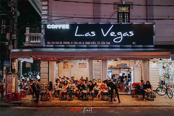 เดินเล่นตลาดกลางคืน เจอร้านกาแฟ Las Vegas แต่อยู่ที่ Can Tho คนเยอะมาก บรรยากาศเหมือนร้านเหล้าปั่น แต่นั่งดื่มชากาแฟ หันหน้าเข้าถนนกันทั้งนั้น สังเกตดูพบว่าร้านกาแฟลักษณะนี้มีเยอะมาก อยากลองนั่งเหมือนกัน แต่โต๊ะเต็มตลอด