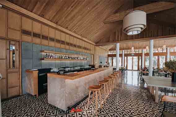 Center ของรีสอร์ต เป็นอาคารสองหลังตั้งอยู่ตรงข้ามกัน ที่เห็นอยู่นี้คือ Open Bar เปิดโล่งรับลมธรรมชาติที่พัดตลอดทั้งวัน รายล้อมด้วยวิวที่สวยสะดุดตา สร้างบรรยากาศได้แบบชิวๆ แต่ฟีลกู๊ดมาก