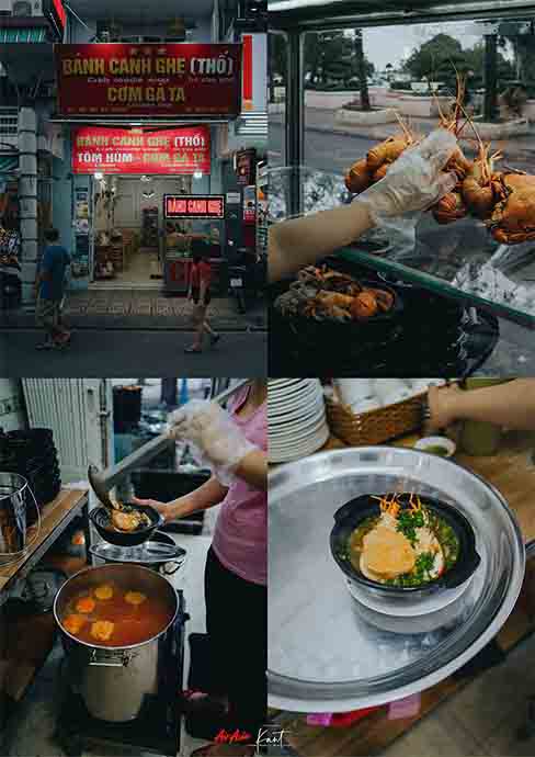 มาเวียดนามต้องทานเฝอ เจอเป็นไม่ได้ ต้องขอเข้าไปลอง เพราะชอบมาก ซุปหอมหวาน ไปเจอร้านเฝอปู เฝอล็อปสเตอร์ ที่นี่เรียกว่า Noodle Crab หรือบะหมี่ปู จุดเด่นของร้านนี้คือน้ำซุปสีเข้มข้น พร้อมปูและกุ้งทั้งตัวใส่ลงไปในชาม ทานกับเส้นบะหมี่นุ่มๆ ซุปเข้มๆ แบบไม่ต้องปรุงก็เข้ากันได้ดี ร้านนี้อยู่หน้าสวนสาธารณะ แถวตลาดกลางคืนครับ ราคาตามไซส์ของกุ้งและปู อยู่ที่ประมาณ VND 200,000-300,000 หรือ 260-390 บาท