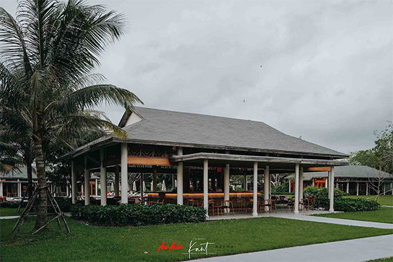 ผมเทียบ 2 รูปนี้ให้ดูเรื่องอัตลักษณ์ทางการออกแบบที่สอดรับกันดีของ 2 อาคาร ซ้ายคือ อาคาร Azerai Arrival Pavilion ซึ่งอยู่บนฝั่งของเมืองที่เรารอขึ้นเรือมาครับ ส่วนรูปขวาคือ Lobby Hall ในตัวรีสอร์ต ซึ่งเราจะเช็คอินกันที่นี่ จะเห็นว่า ออกแบบได้กลมกลืนกันมาก แม้จะอยู่กันคนละฝั่ง เป็นการสร้างการจดจำให้กับผู้บริโภคได้ดี ในแง่ของการสร้างอัตลักษณ์ของแบรนด์โรงแรม นั่นคือ Azerai ของผู้ก่อตั้งเครือโรงแรม Aman Resorts ที่มีชื่อเสียงโด่งดังไปทั่วโลก แน่นอนว่าหากเราประทับใจกับ Aman Resorts ในความเรียบง่ายหรูหราและความรู้สึกถึงสัมผัสที่ลึกซึ้งของสถานที่ที่เราไปพักผ่อน เราจะต้องนึกถึง Azerai Resort ด้วย