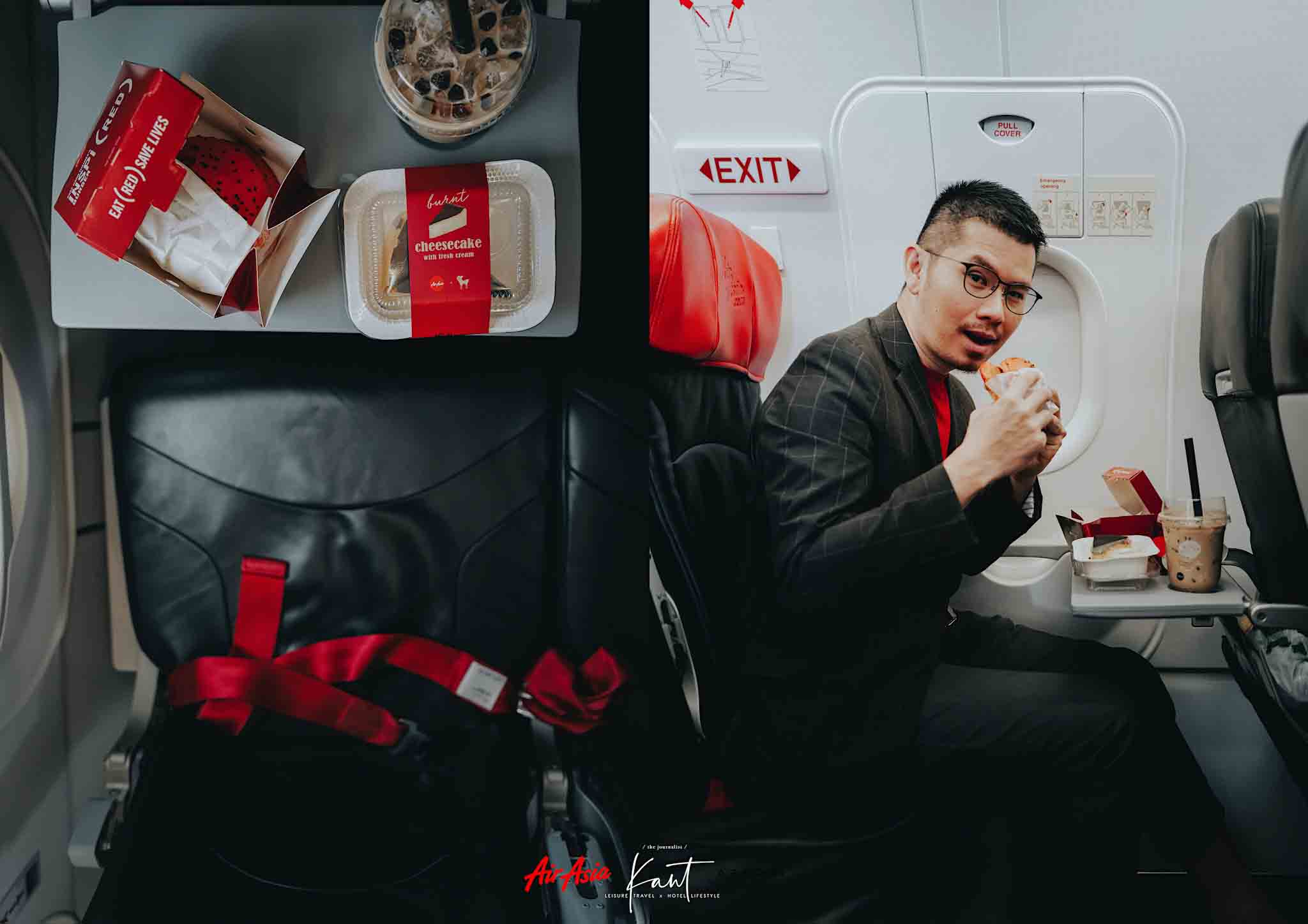 นานๆ จะได้นั่งแอร์เอเชียสักที ก็รู้สึกว๊าวดี กับนวัตกรรมการบริการที่แปลกใหม่ โดยเฉพาะเรื่องอาหาร อย่างที่รู้ ว่าโลว์คอสอาจจะต้องซื้ออาหารร้อนหรือของว่างเพิ่มบนเครื่อง แต่เมนูกลับไม่ธรรมดา จำได้ว่า ช่วงที่บินมีเบอร์เกอร์จากเชฟหงส์ มีชีสเค้กหน้าไหม้จากอาฟเตอร์ยู (อร่อยมาก) และเด็ดสุดกับการดื่มชาไข่มุกบนความสูง 30,000 ฟุตจากระดับน้ำทะเลปานกลาง ฟินๆ เพลินๆ แปบเดียวก็ถึงเกิ่นเทอครับ