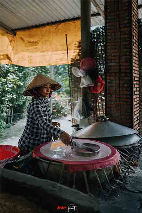 จากนั้นก็นั่งเรือเข้าคลองต่อไปยัง โรงงานทำเส้นก๋วยเตี๋ยว (Sáu Hoài Rice Noodle Factory) ที่เรากินๆ กันในโรงแรมหรือร้านอาหารทั่วไปนี่แหละครับ เป็นโรงงานที่แปรรูปข้าวมาเป็น เส้นก๋วยเตี๋ยว