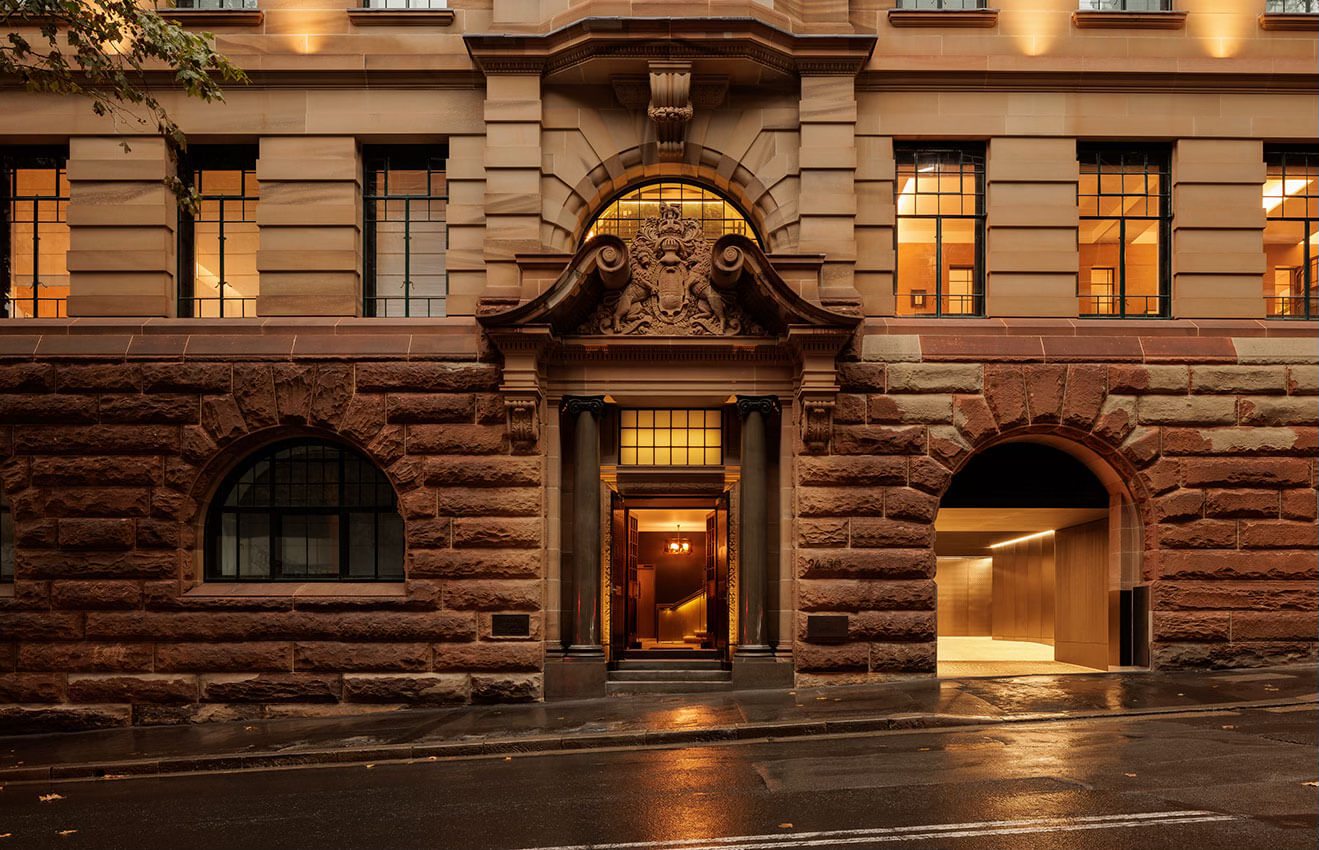 ล็อบบี้ด้านหน้าทรงสูงโปร่งนำพาเราไปสู่บาร์และร้านอาหารด้านใน ซึ่งเป็นลานกลางที่มองเห็นท้องฟ้าด้านบน เชื่อมต่ออดีตและปัจจุบันของ Sydney เข้าไว้ด้วยกัน โดยรอบประดับด้วยงานศิลปะจากศิลปินหลายท่าน หินสีเทาที่ดูอบอุ่น กระจกโบราณ และการเลือกใช้วัสดุไม้สีเข้มและสีอ่อนทั่วทั้งโรงแรม ได้รับแรงบันดาลใจมาจากมรดกของอาคาร งานศิลปะในพื้นที่สาธารณะได้รับการดูแลโดย Freeman Ryan Design และ The Artling