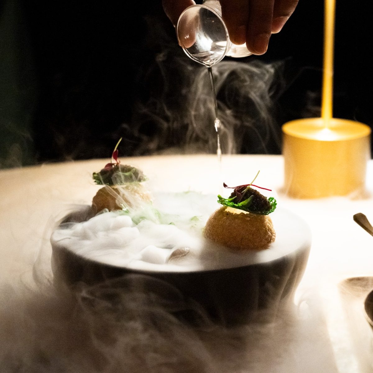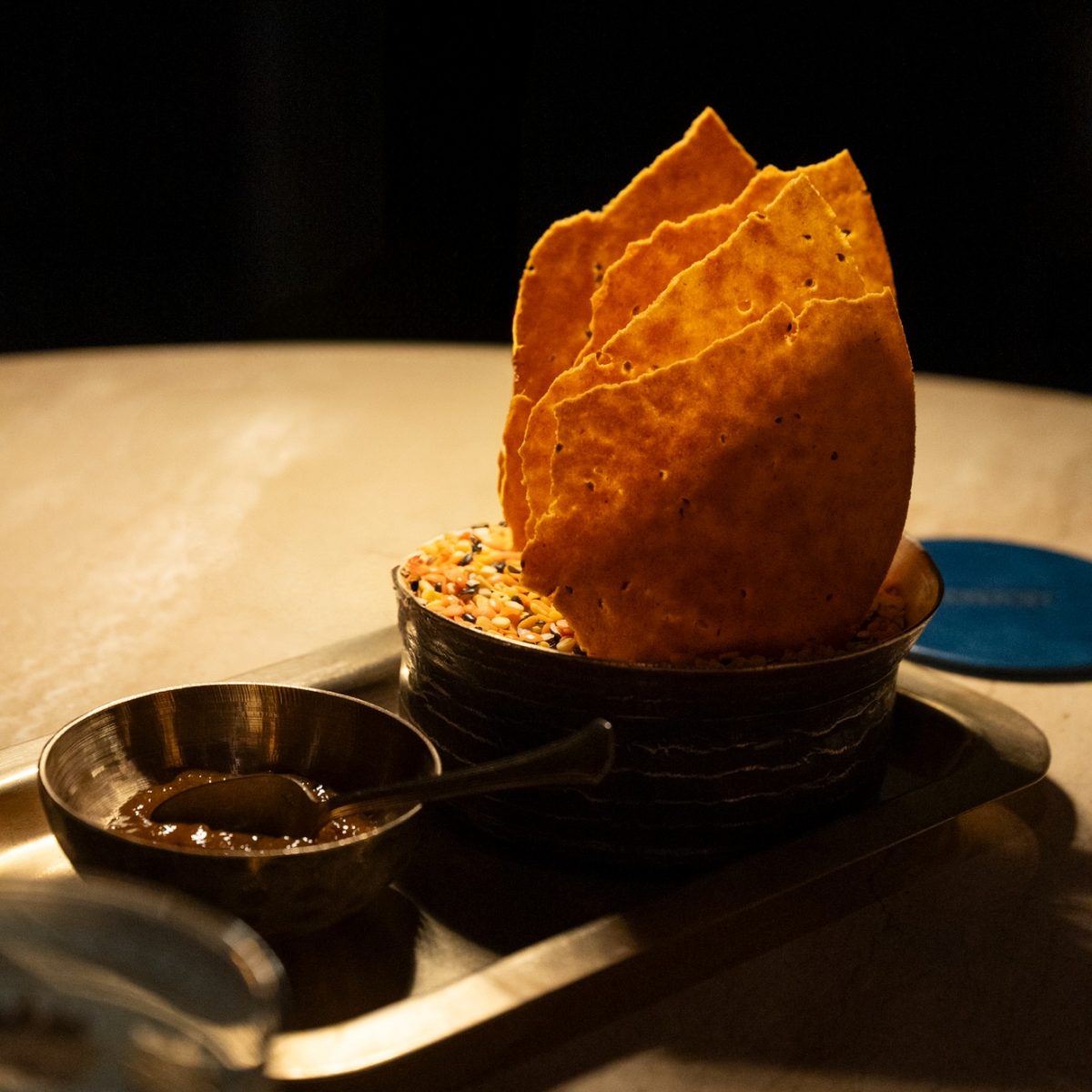 อาหารที่เราทานมีทั้งข้าวเกรียบแบบอินเดียที่เอามาเรียกน้ำย่อย อร่อยมาก และยังมี Kristal Carviar ทอดมาเป็นลูกกลมๆ ทานหมดในคำเดียว Oyster ที่วางท๊อปลงบนแป้ง Pani Puri พร้อมเครื่องเทศสไตล์อินเดียก่อนทานให้คลุกรวมกันเละๆ