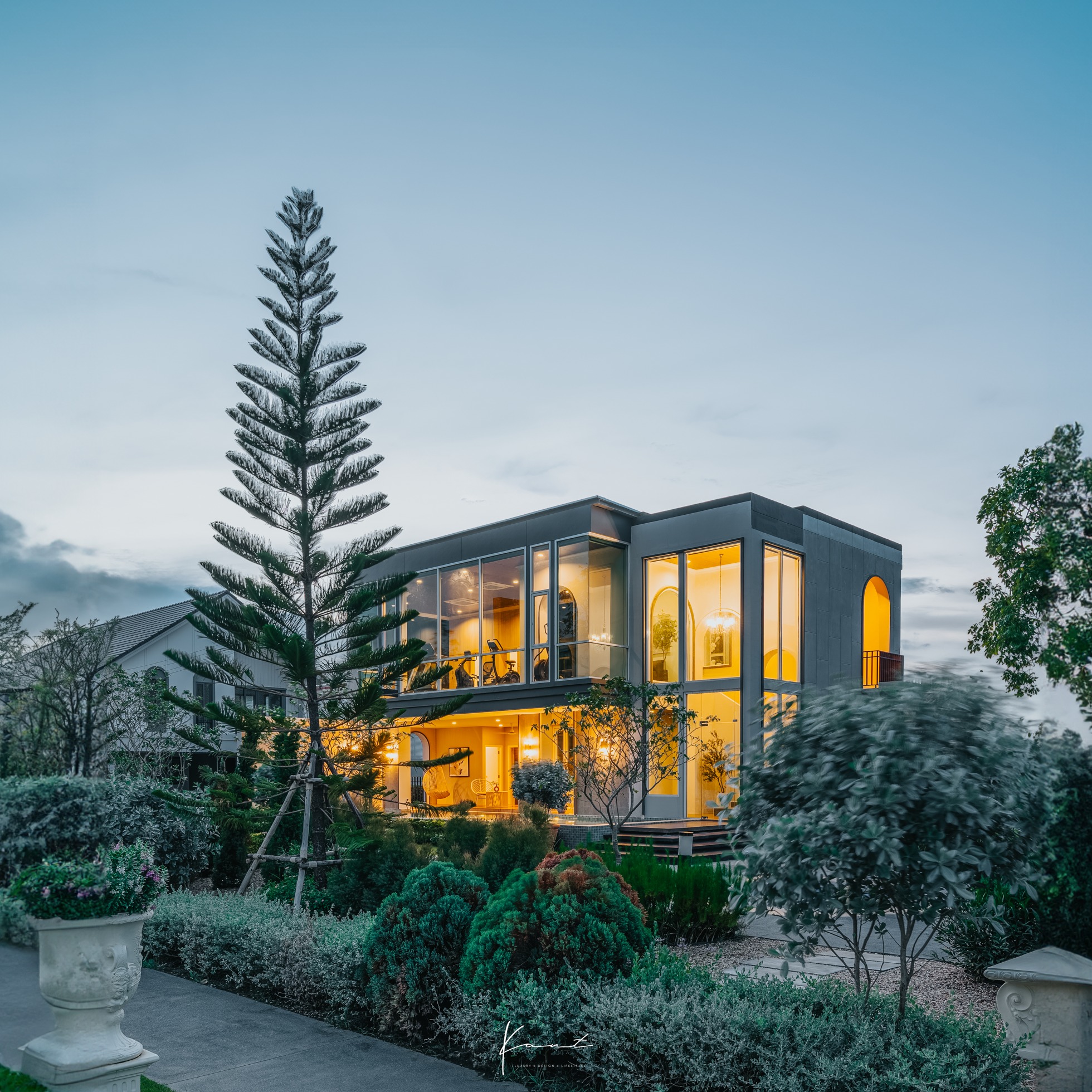 งานดีไซน์มีความโดดเด่นในเรื่องของสไตล์ยุโรปสมัยใหม่ด้วยหลังคาสามเหลี่ยมทรงสูงดูโมเดิร์นมาก มาพร้อมกับประตูโค้งทรง Arch ให้ความอบอุ่น ดูหรูหรา สวยงาม