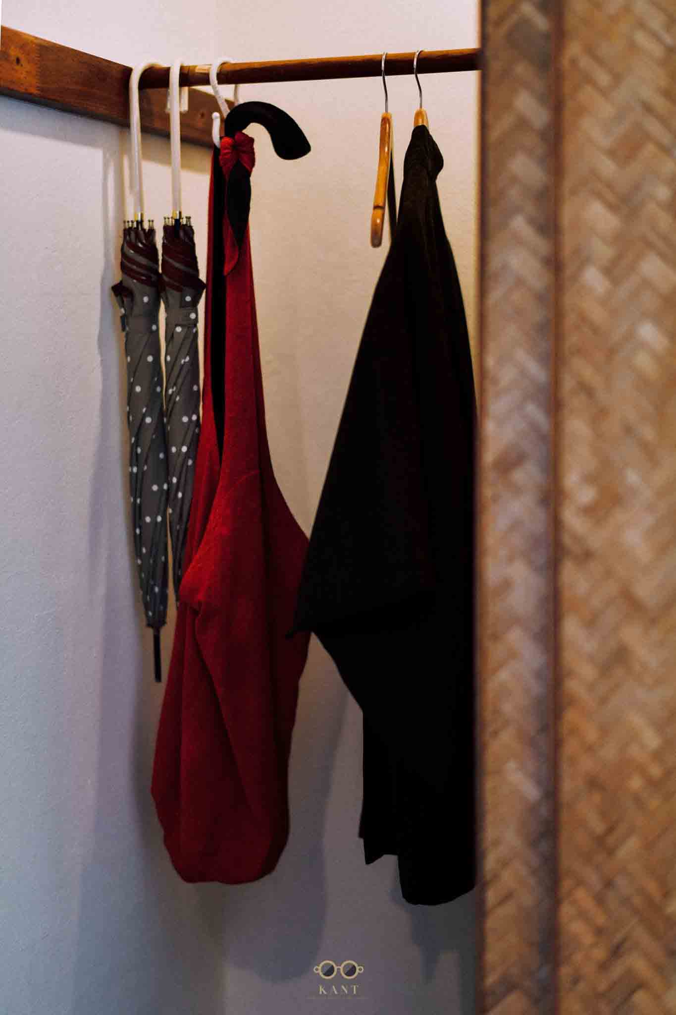 ภายในตู้เสื้อผ้าได้มีการจัดเตรียมอุปกรณ์อำนวยความสะดวกดุจมาตรฐานโรงแรม 5 ดาวทั่วไป ทั้งร่ม ไฟฉาย ไม้แขวน รองเท้าแตะและมีชุดยูกาตะไว้ให้สวมใส่ ที่สำคัญ ช่วงนี้เป็นฤดูหนาว ทางเรียวกังได้จัดเตรียม “ฮาโอริ” ก็คือ เสื้อคลุมชุดยูกาตะซึ่งคนญี่ปุ่นใช้สวมทับอีกชั้นหนึ่งหลังใส่ชุดเพื่อคลายความหนาวสร้างความอบอุ่นครับ