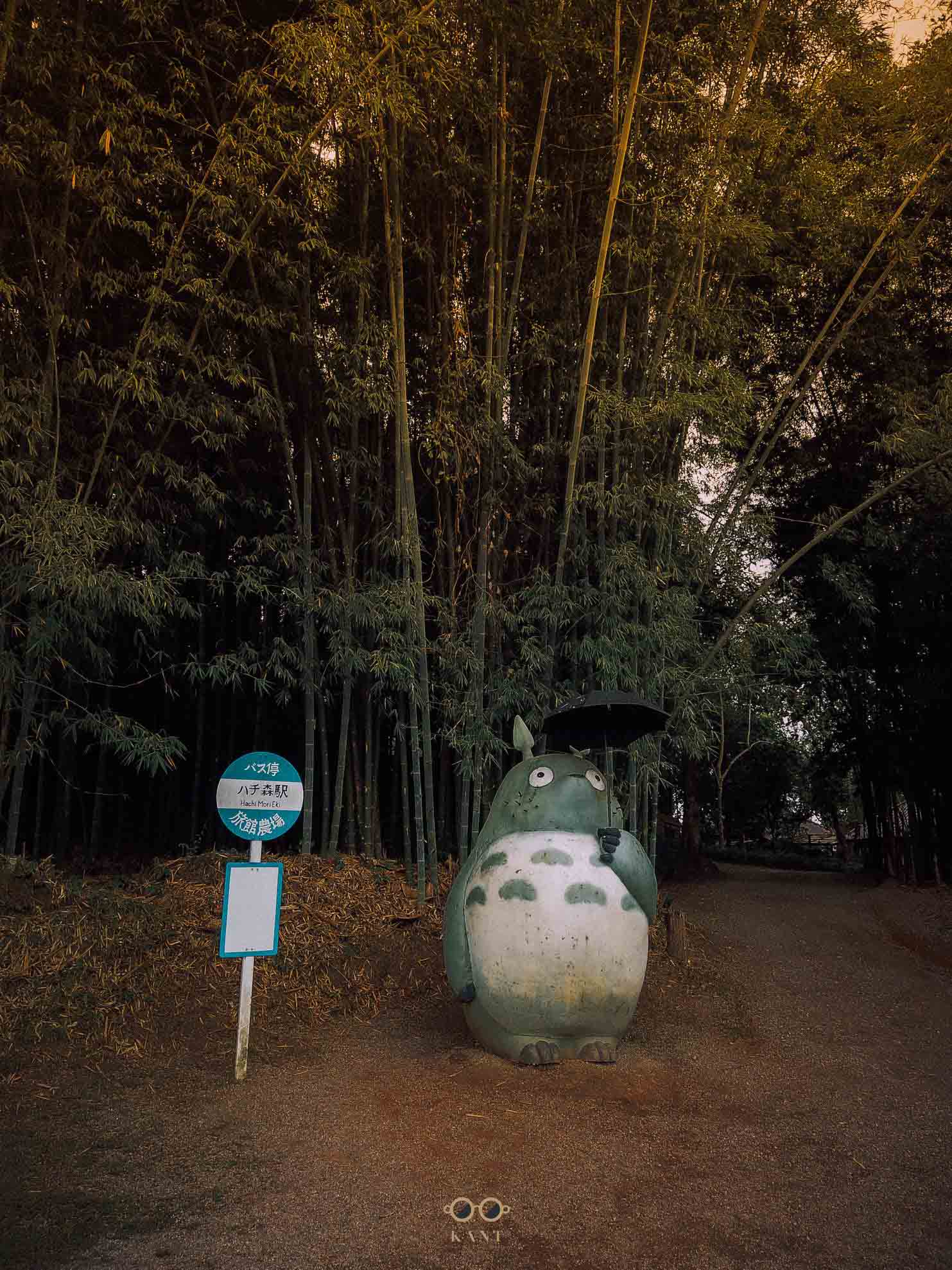 มองจาก คาเฟ่ 1 จะเห็นคาเฟ่ 2 ซึ่งอยู่ฝั่งตรงข้ามถนน ฝั่งนั้นคนก็พลุกพล่านครับ สามารถยืมจักรยานปั่นไปได้เลย ทั้ง 2 คาเฟ่ขายเครื่องดื่มและขนมเหมือนกัน แต่คาเฟ่ 2 จะไม่มีอาหารให้บริการครับ คาเฟ่ 2 จะอยู่โซนอาร์ต เซ็นเตอร์ และมีไฮไลท์นั่นคือรูปปั้นโตโตโร่ ตัวการ์ตูนเรื่องโปรดจากสตูดิโอจิบลิ มาตั้งไว้ให้เราได้เข้าไปถ่ายรูปเล่นกัน ด้านในเป็นอุโมงค์ป่าไผ่ เหมือนอาราชิยาม่าที่เกียวโตเลยครับ