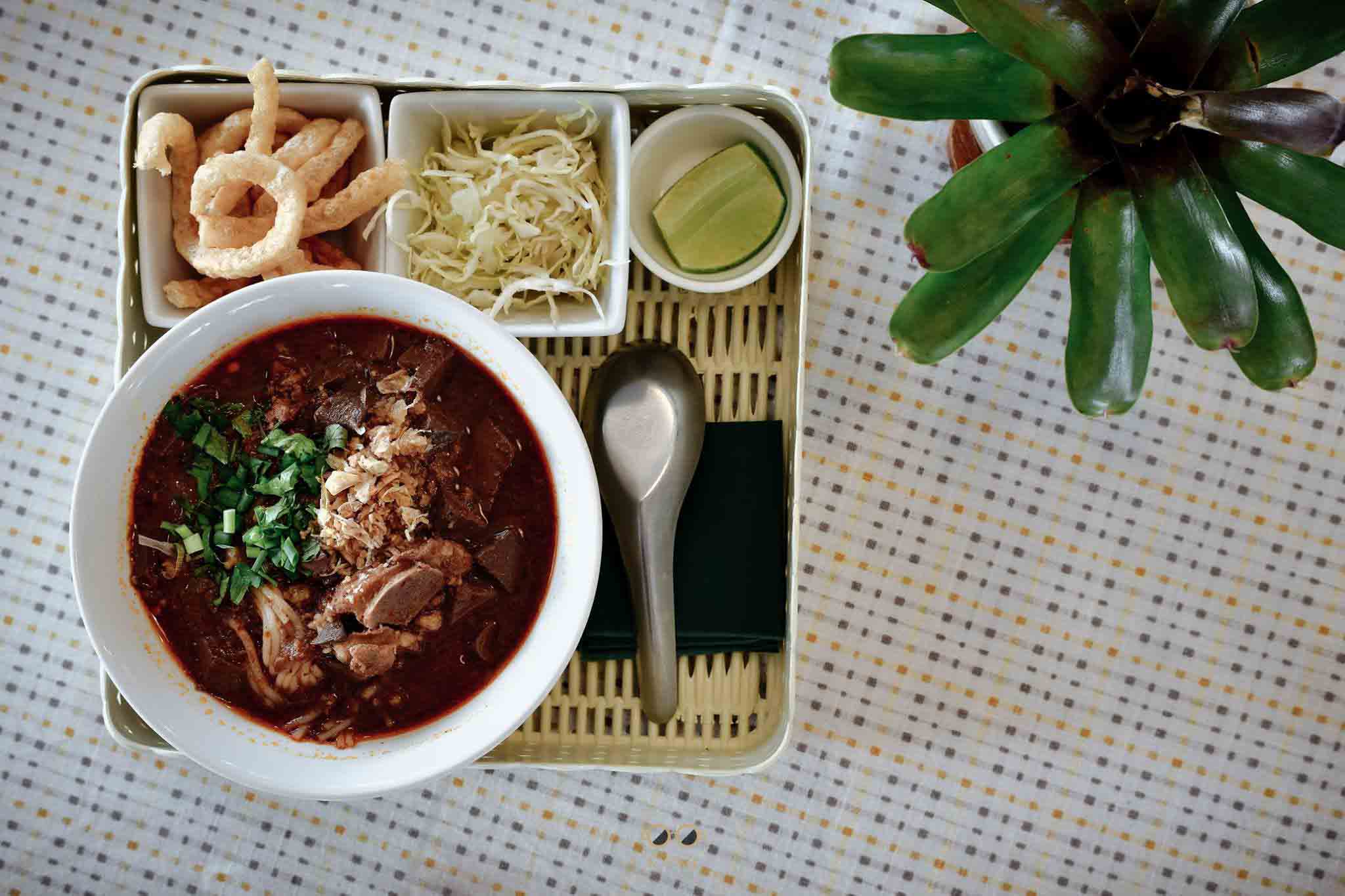 แต่ที่ชอบสุดของผมคงจะเป็น “ขนมจีนน้ำเงี้ยว” ที่รสชาตดีกว่าหลายเจ้าที่ขายกันในตัวเมืองเสียอีกครับ ผมอาจจะติดลิ้นกับน้ำเงี้ยวข้นๆ ใส่ถั่วเน่า ไม่ค่อยชอบแบบน้ำใสแจ๋ว โดยรวมแล้วทานไป 2 ชามครับ