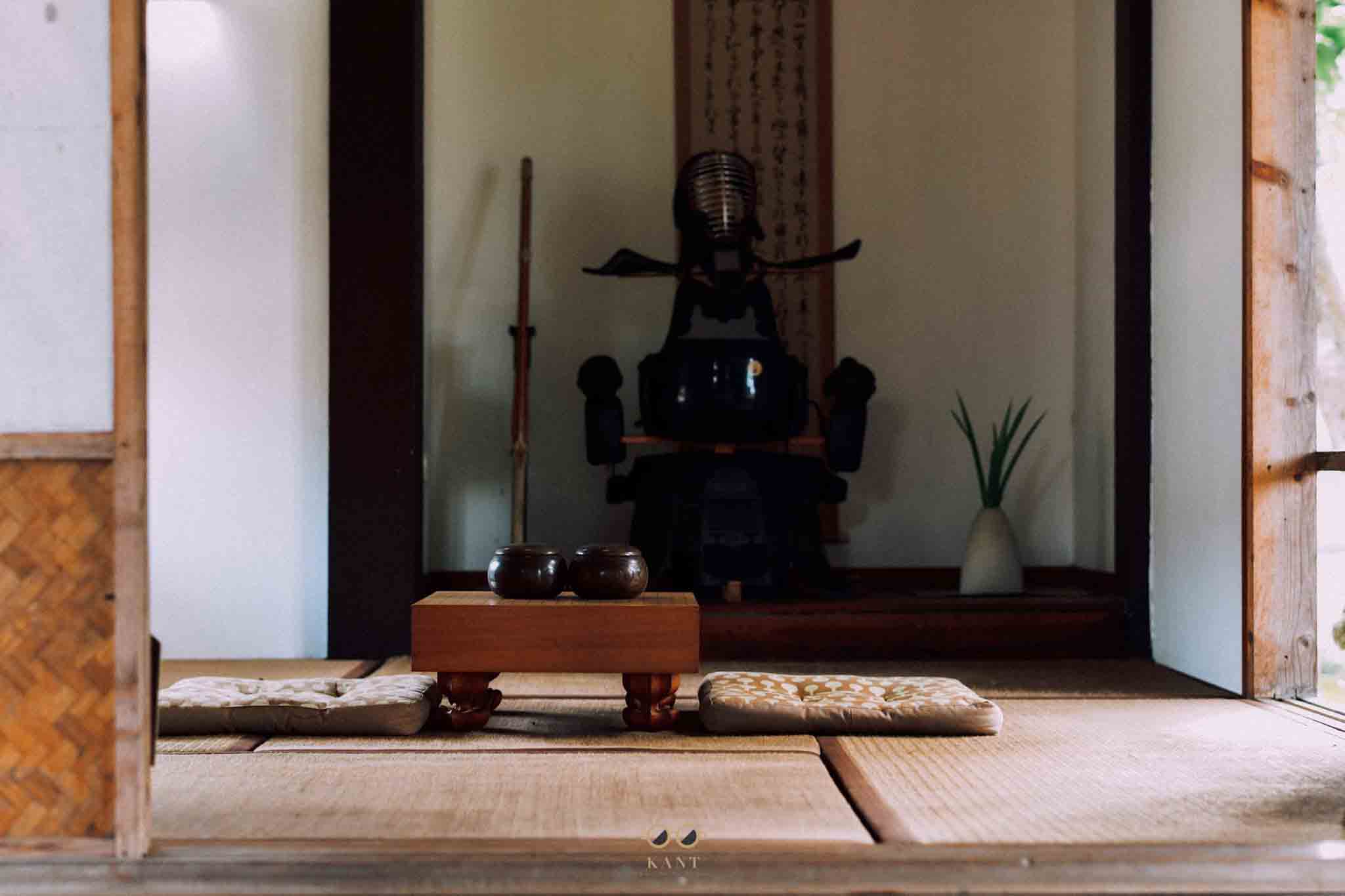 บรรยากาศภายในเรียวกัง คาเฟ่ ตกแต่งให้ความรู้สึกคล้ายกับการอยู่ญี่ปุ่น มีห้องน้ำชาสมัยเอโดะที่โชว์ชุดเกราะไว้ให้ถ่ายภาพ