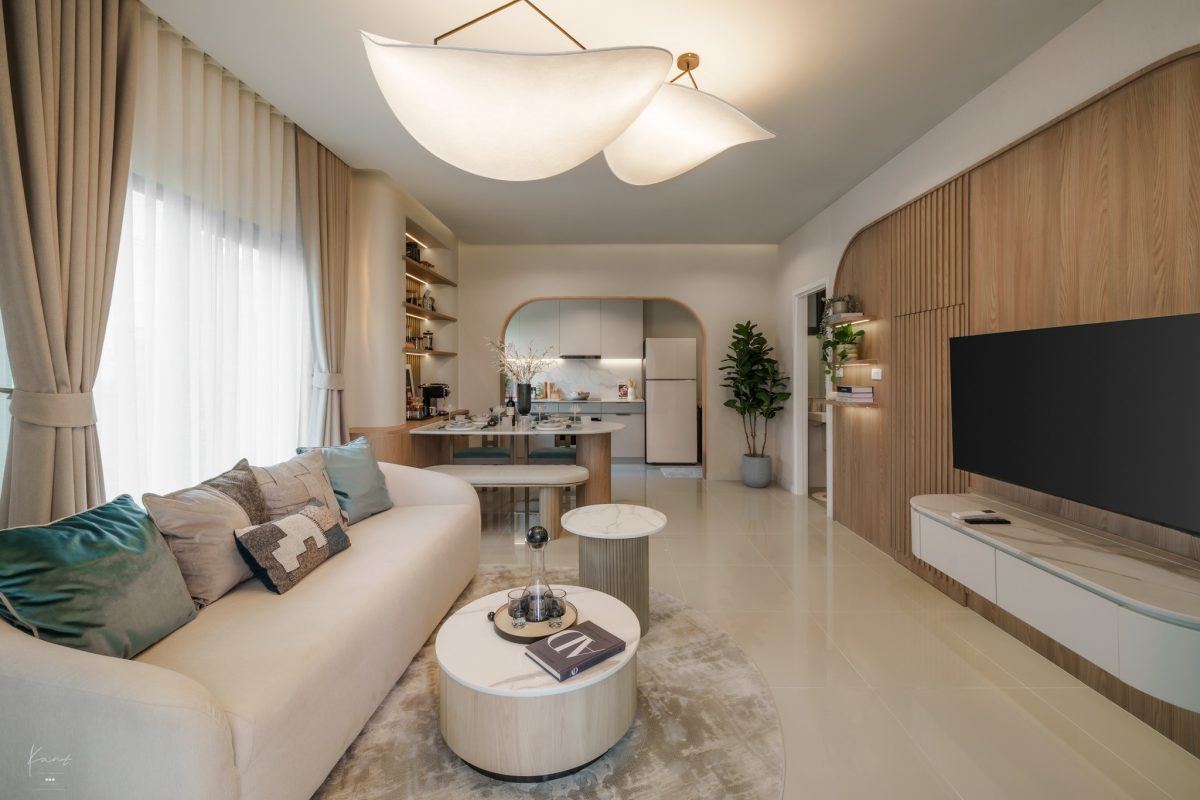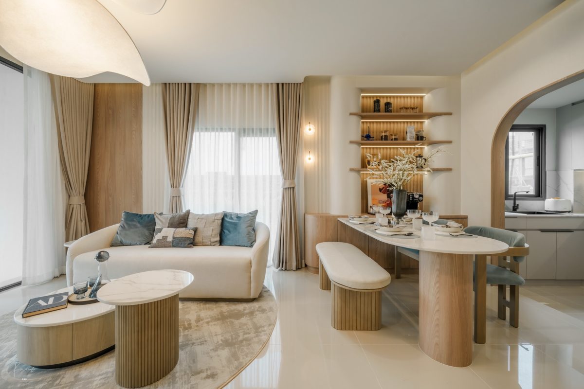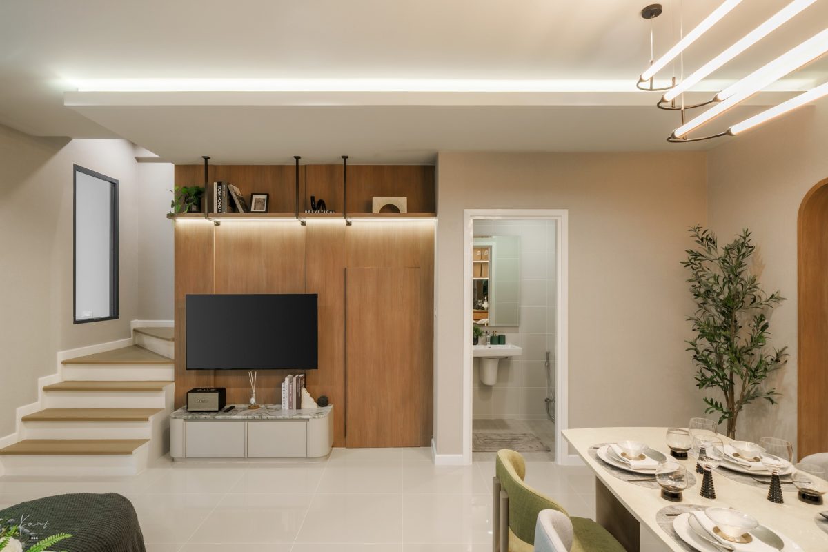 สเปซตรงนี้กว้างพอให้เราจัดวางโซฟาพักผ่อนตัวโปรด พร้อมกับโต๊ะทานข้าวขนาดกำลังดีได้อย่างลงตัว
