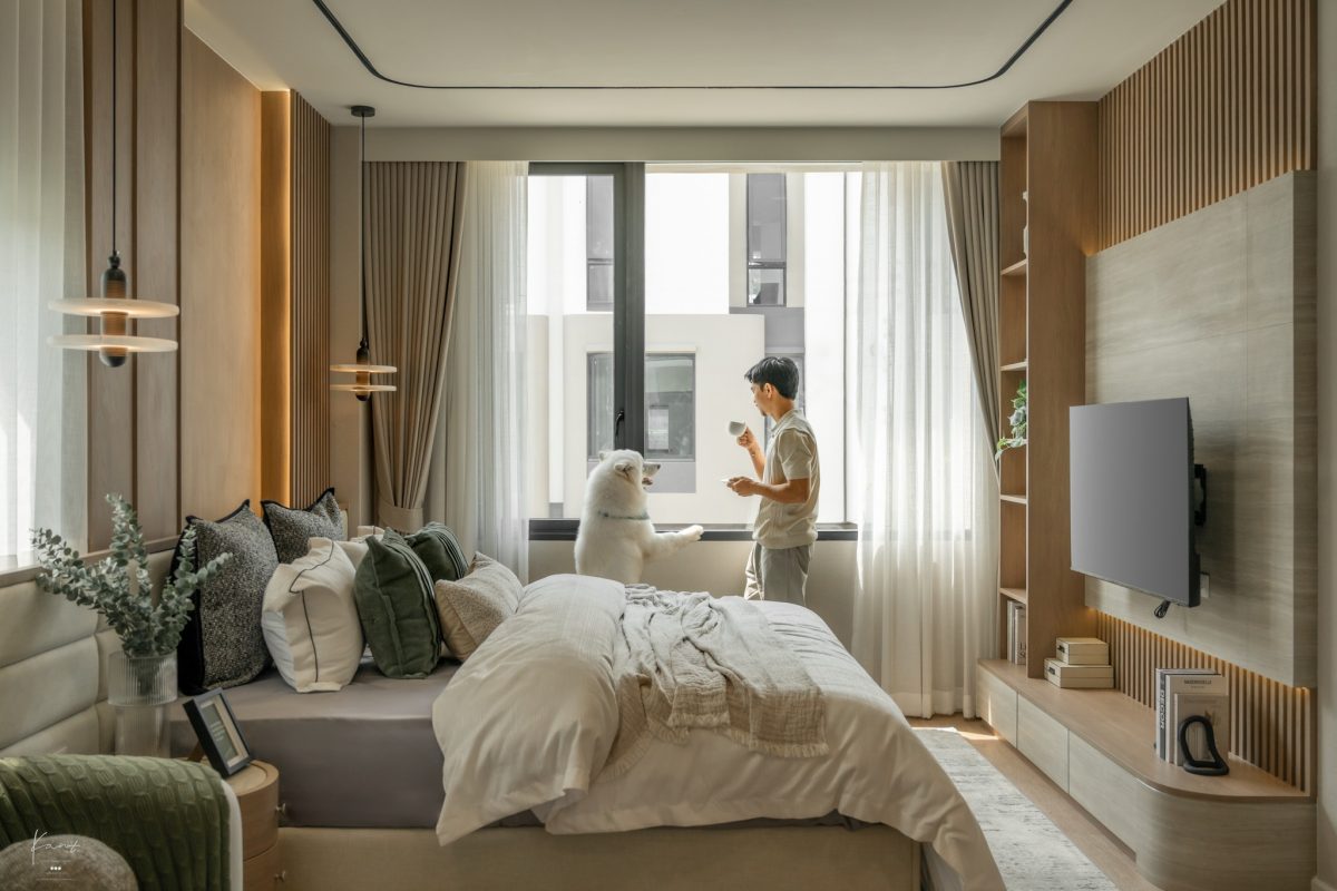 งานออกแบบและฟังก์ชันของ CORDIZ จึงคิดมาเพื่อให้ความรู้สึกของการอยู่บ้านอย่างแท้จริง โครงการนี้ยังให้ความสำคัญกับความเป็นส่วนตัวสูงมากด้วยจำนวนเพียง 68 ยูนิต ซึ่งตรงกับอินไซต์ของคนยุคนี้ที่โหยหาสเปซเงียบสงบเพื่อชาร์จพลัง