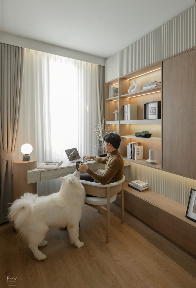 เรียกได้ว่าฟังก์ชันตอบโจทย์มากในยุค Nomad กลายเป็นเรื่องปกติ การมีห้องแบบนี้ในโครงการตัวเองหมายความว่าเราไม่ต้องออกไปนั่งคาเฟ่นอกบ้านทุกวัน และยังได้ความเป็นส่วนตัวที่คาเฟ่ให้ไม่ได้