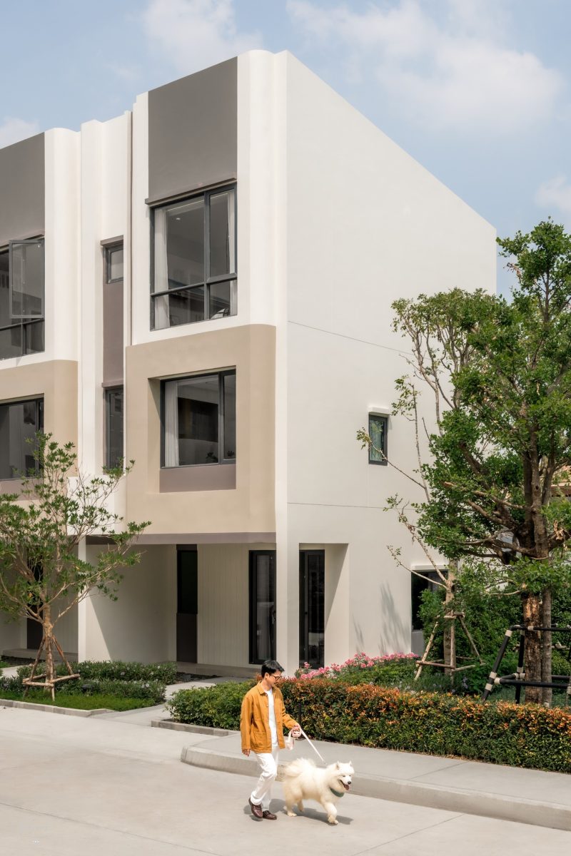 ส่วน Clubhouse จัดวางเอาไว้ด้านหน้าโครงการ ข้อดีก็คือทำหน้าที่เป็นทั้ง First Impression และ Buffer Zone ในแง่ความปลอดภัย เพราะการที่ Clubhouse อยู่ด้านหน้าก็หมายความว่าคนที่จะเข้ามาในโครงการต้องผ่านจุดเดียว ควบคุมการเข้าออกได้ง่ายกว่า อีกเรื่องที่น่าสนใจคือเรื่องความเป็นส่วนตัว