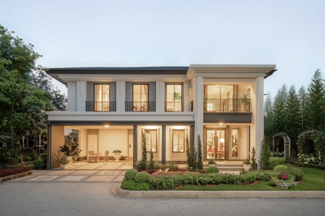 เห็นได้จากบ้านในโครงการ CRYSTAL SOLANA ตัวบ้านภายนอกออกแบบได้อย่างหรูหราเป็นบ้านสไตล์ยุโรปที่มีความร่วมสมัย เป็นงานสถาปัตยกรรมที่ไร้กาลเวลาแบบ Contemporary Timeless Style