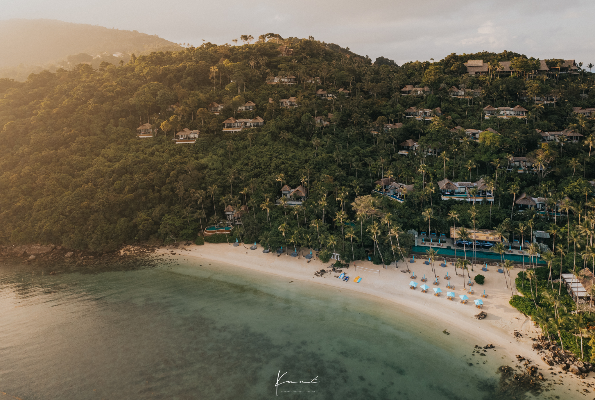 ผมชอบถ่ายภาพตัดมุมสูงของรีสอร์ท มันดูสวยและมีมิติดี ถ้ามุมระนาบปกติ เหล่านี้คือเนินเขาที่ลดหลั่นกันไป ทำให้แต่ละวิลล่าไม่บล็อควิวกันเอง จะได้เห็นทะเลแบบเต็มตา