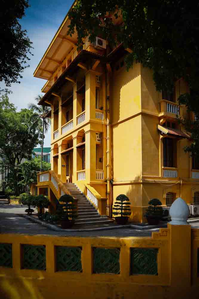 ย่านเมืองเก่าแห่งนี้นับว่ามีประวัติศาสตร์ยาวนานถึง 1,000 ปี แม้อาคารจำนวนมากจะถูกทำลายไปในระหว่างสงครามในสมัยศตวรรษที่ 19 แต่โครงสร้างสถาปัตยกรรมโบราณที่มีผนังสีเหลืองในหลายๆ เฉดนั้นก็ยังคงพอเหลือให้เห็นอยู่บ้าง เราจึงได้เห็นหลายอาคารและที่พักอาศัย เต็มไปด้วยสีเหลือง ไม่ว่าจะเป็นทำเนียบและบ้านโฮจิมินห์ หรือที่เรียกว่า “ทำเนียบเหลือง” เป็นอาคารทรงโคโลเนียลสีเหลืองที่ฝรั่งเศสสร้างขึ้น เพื่อใช้เป็นที่ทำการของผู้สำเร็จราชการชาวฝรั่งเศส